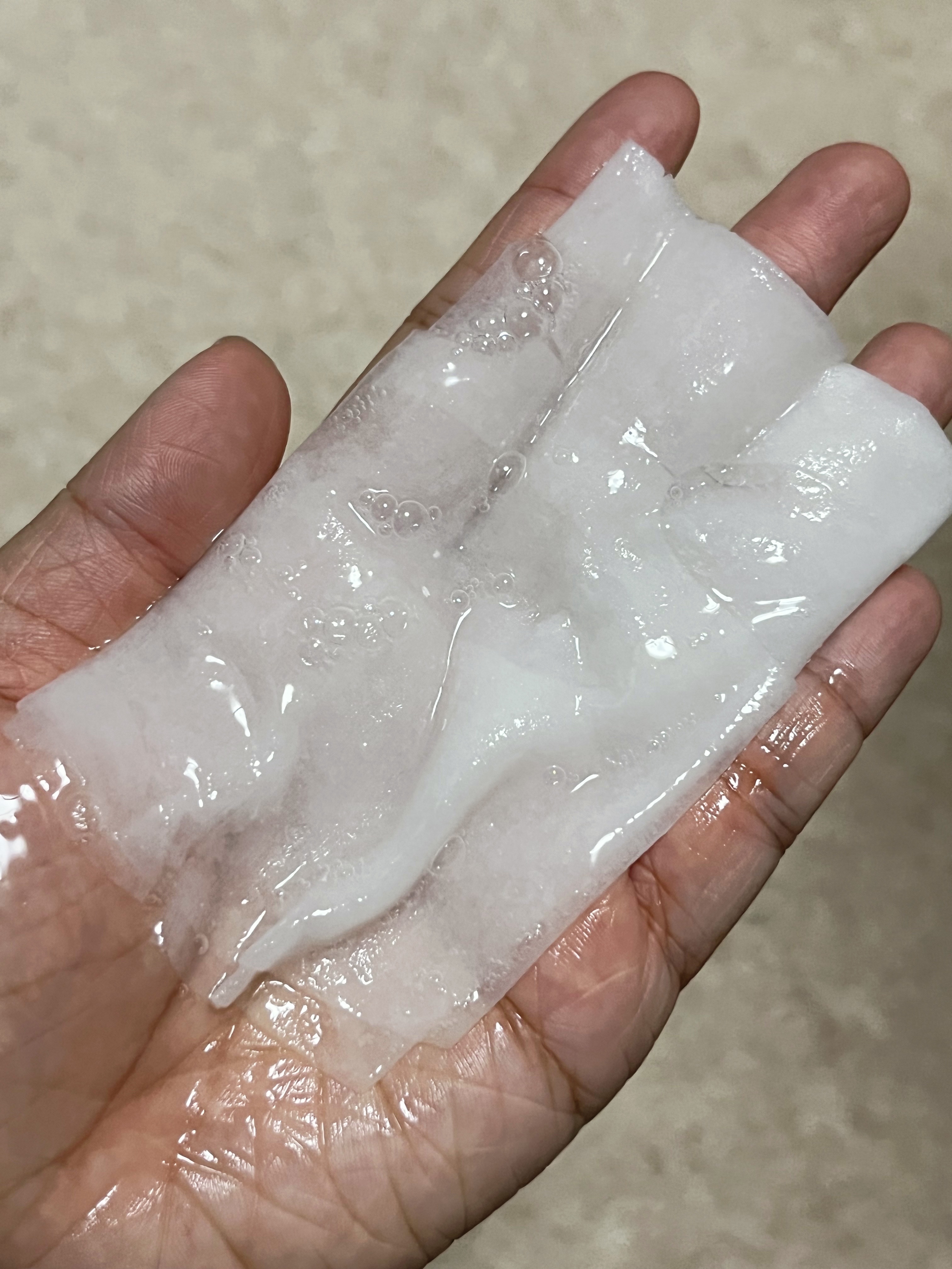 薄くて密着するシート。サラサラで気持ちいいです! シカ成分のせいなのかピリピリとした感じ。母はピリピリしないみたいなので、個人的に合わないのかもしれません。 つけた後はもちもちサラサラになるので仕上がりはいいです。