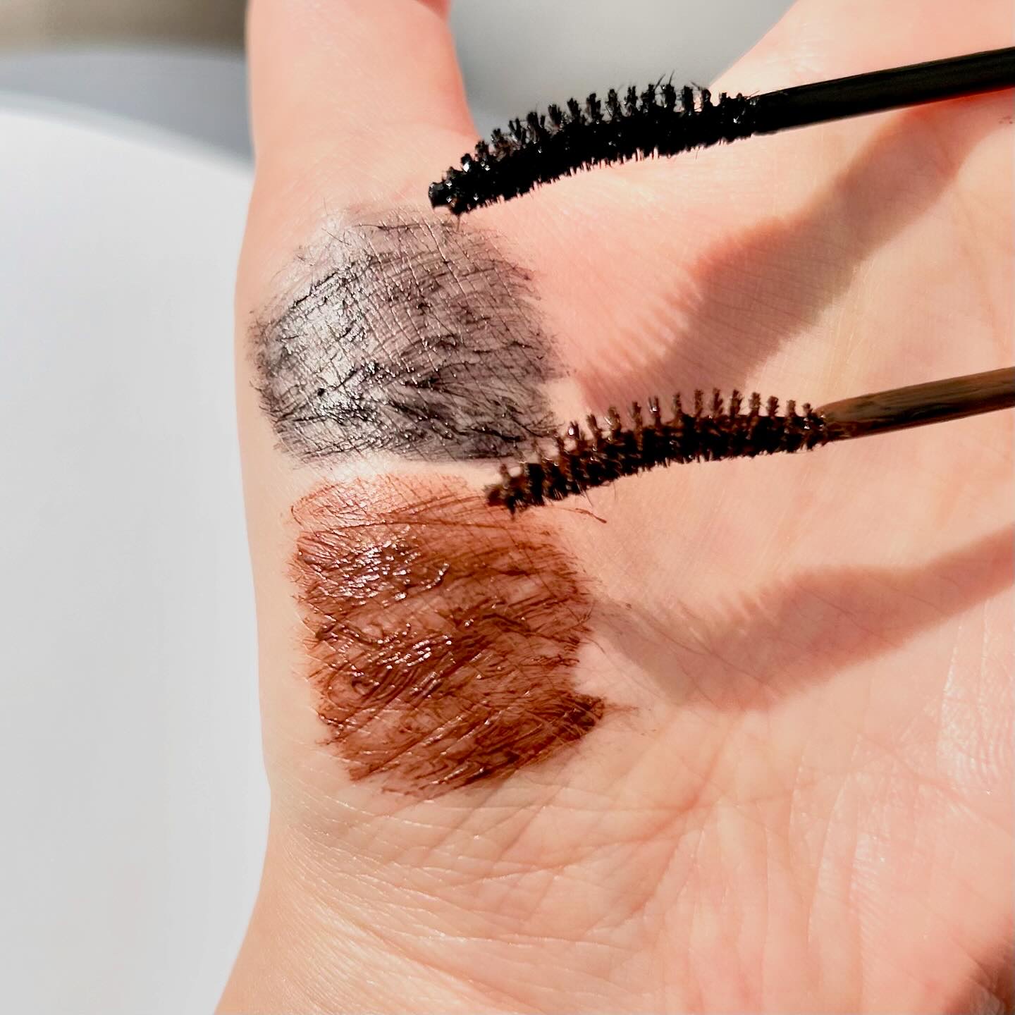 見た目通りのニュアンスカラーがそのまま発色してくれてめちゃくちゃかわいい ロゼブラウンの名前の通りロゼワインのような淡いピンクがポイントカラーになってる 特に左のアッシュ系のブラウンがお気に入り🫶