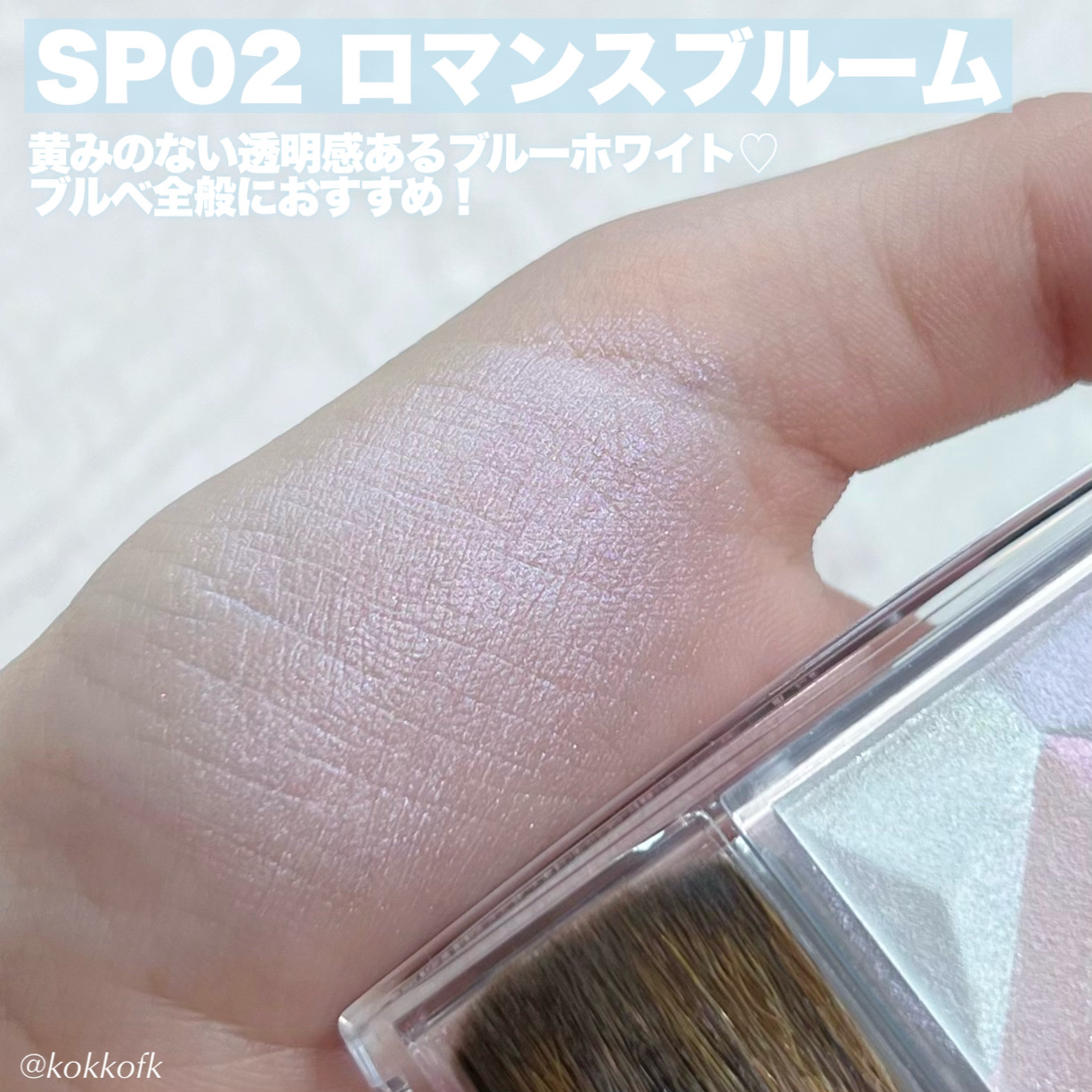 - <SP2 ロマンスブルーム> トリイソステアリン酸ポリグリセリル-2、トリエチルヘキサノイン、(フッ化/水酸化/酸化)/(Mg/K/ケイ素)、ヘキサ(ヒドロキシステアリン酸/ステアリン酸/ロジン酸)ジペンタエリスリチル、ミリスチン酸亜鉛、(HDI/トリメチロールヘキシルラクトン)クロスポリマー、ペンチレングリコール、ビスジグリセリルポリアシルアジペート-2、フェノキシエタノール、ハイドロゲンジメチコン、メチルパラベン、シリカ、トコフェロール、BG、水、ヒアルロン酸Na、カミツレ花エキス、ラベンダー花エキス、ローズマリー葉エキス、タルク、合成フルオロフロゴパイト、酸化チタン、マイカ、酸化スズ、酸化鉄、グンジョウ、赤226、水酸化Al <SP1 オーロラプリズム> トリイソステアリン酸ポリグリセリル-2、トリエチルヘキサノイン、(フッ化/水酸化/酸化)/(Mg/K/ケイ素)、ヘキサ(ヒドロキシステアリン酸/ステアリン酸/ロジン酸)ジペンタエリスリチル、ミリスチン酸亜鉛、(HDI/トリメチロールヘキシルラクトン)クロスポリマー、ペンチレングリコール、ビスジグリセリルポリアシルアジペート-2、フェノキシエタノール、ハイドロゲンジメチコン、メチルパラベン、シリカ、トコフェロール、BG、水、ヒアルロン酸Na、カミツレ花エキス、ラベンダー花エキス、ローズマリー葉エキス、タルク、合成フルオロフロゴパイト、酸化チタン、マイカ、酸化鉄、酸化スズ、マンガンバイオレット、リンゴ酸ジイソステアリル、グンジョウ、水酸化Al