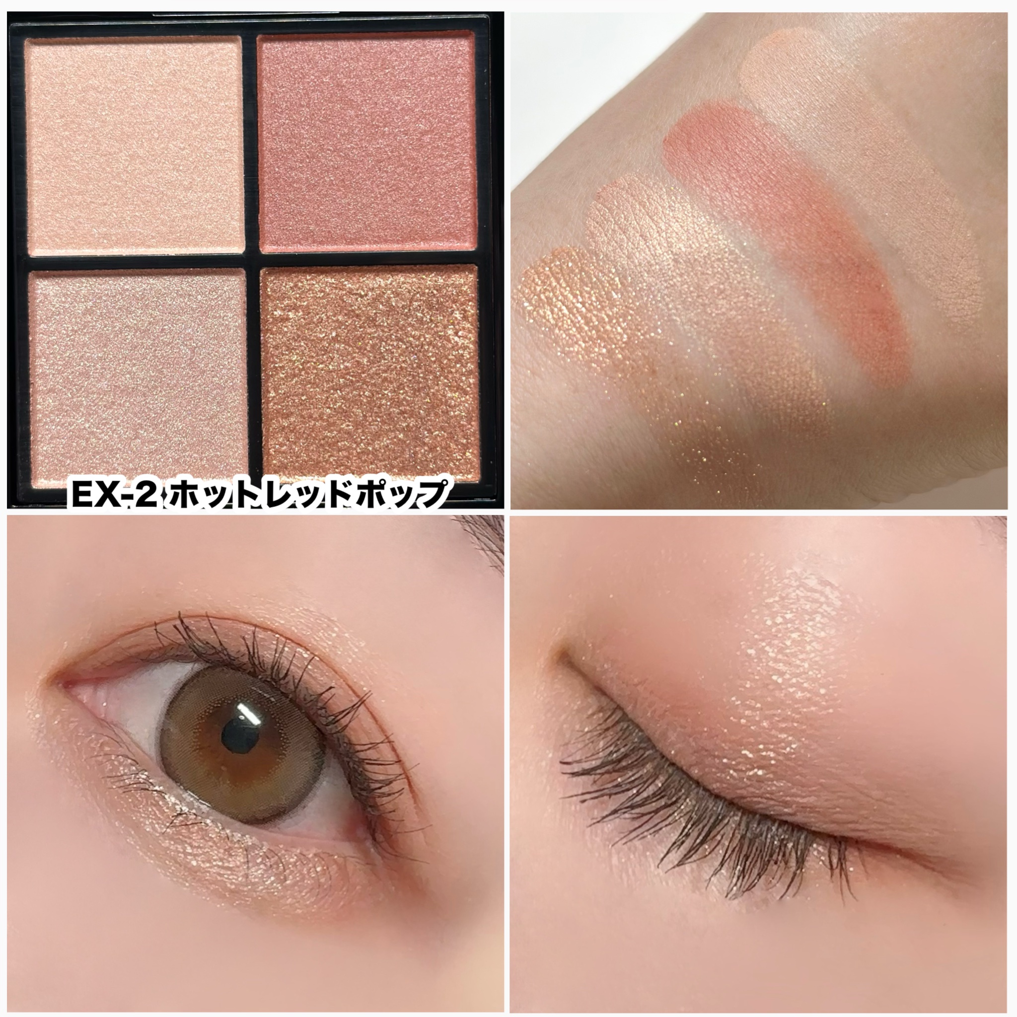- ミュートマット×きらめきグリッター 正反対の2つの質感コントラストでクリッと丸い目もとに仕上がる ポップアップするような立体的シルエットを引き立てる 質感トリックアイシャドウ ■チップ付き <EX-1 ブラッドオレンジポップ><EX-2 ホットレッドポップ><EX-3 ウォームベリーポップ> 質感トリックで、クリっと丸い目もと印象へ。 ミュートマットときらめきグリッターの正反対の2つの質感コントラストで、ポップアップするような立体的シルエットを引き立てるアイシャドウ。 ほんのり血色感を足せる火照りカラーが登場。 ■淡いパステル調の限定色 EX-4【コットンブルーポップ】 EX-5【コットンピンクポップ】