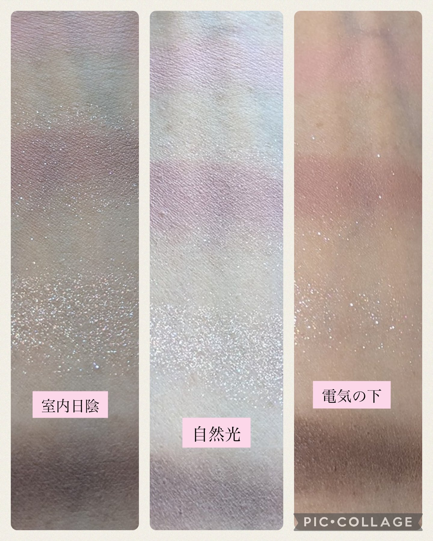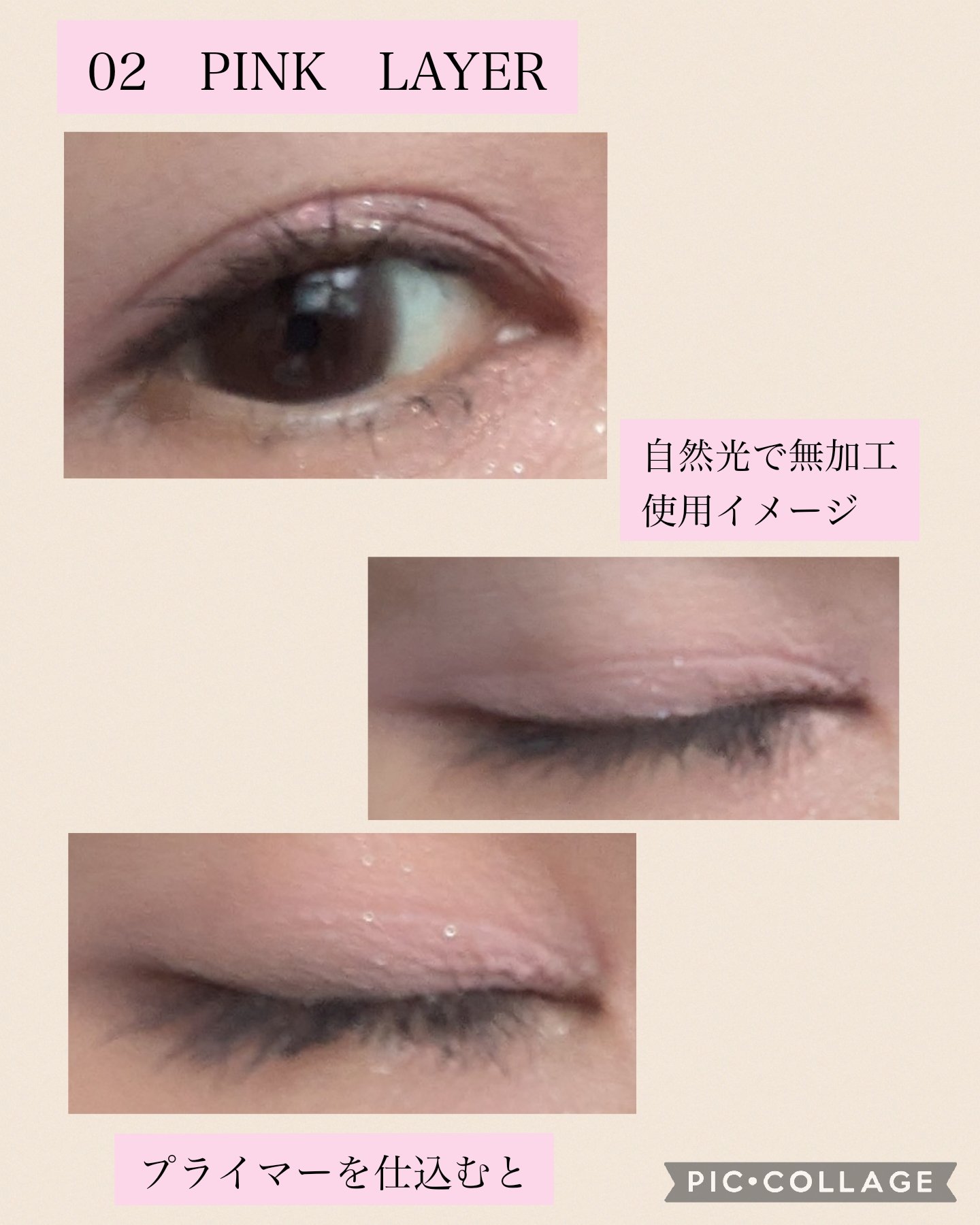 フーミー シングルラメシャドウ☆キアラベージュ ①ブラシでアイホール全体に。 #提供 HOLIKA HOLIKAマイフェイブムードアイパレット 9カラーの タロットリーダー☆ ②ブラシで二重幅に。 ③指で黒目の上辺りにポンポン。 #提供 SISTER ANNウォータープルーフペンシルアイライナー☆ 06BABY PEACHを下瞼全体に描く。 最後、②のカラーでぼかす。