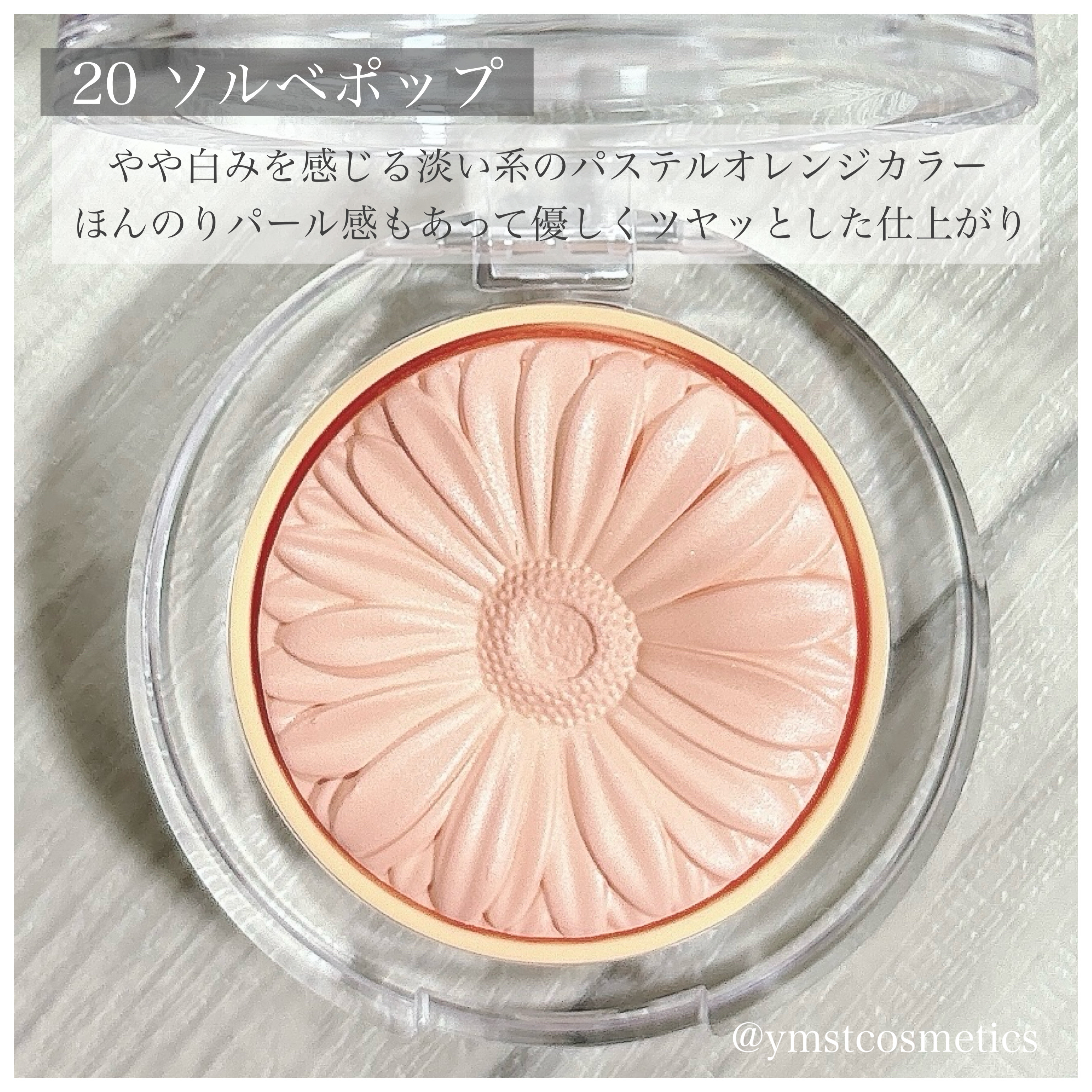 - 摘みたてチーク カラー、花ざかり ナチュラルで華やかに映えるカラーと しっとりした質感、ガーベラの花を形どったキュートな見た目が人気のパウダリー チーク「チーク ポップ」に、旬なカラー2色が仲間入り。 新色の「ソルベ ポップ」は、シアーでクールなオレンジ シャーベットのようにスウィートな印象に。 今だけの限定色「ポピー ポップ」は、ほっこり、かわいい薄づきの旬な赤。イノセントな少女のように、ぽっ!と血色をともして。 肌色さえもキレイに魅せる新2色が加わって、摘みたてのフレッシュなカラーの「チーク ポップ」は、ますます豊富に、カラフルに。 あなたの今の気分にピッタリなカラーを摘みとって、今シーズン、咲き誇るカーベラのように華やいでみませんか。