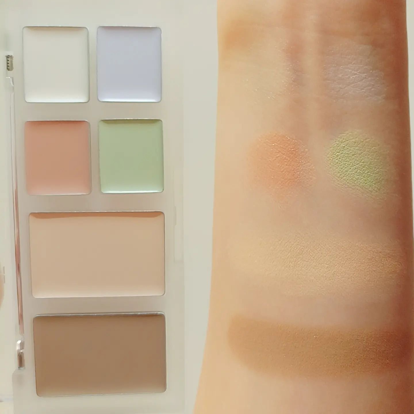 スキンブリージングテクスチャーで軽くて肌に負担のない6色カラーのコンシーラーパレット。 バームのようなとろけるようなテクスチャー。軽い使い心地でしっとりとした使用感。 全体的にナチュラルなツヤ感があるのも良いですね。