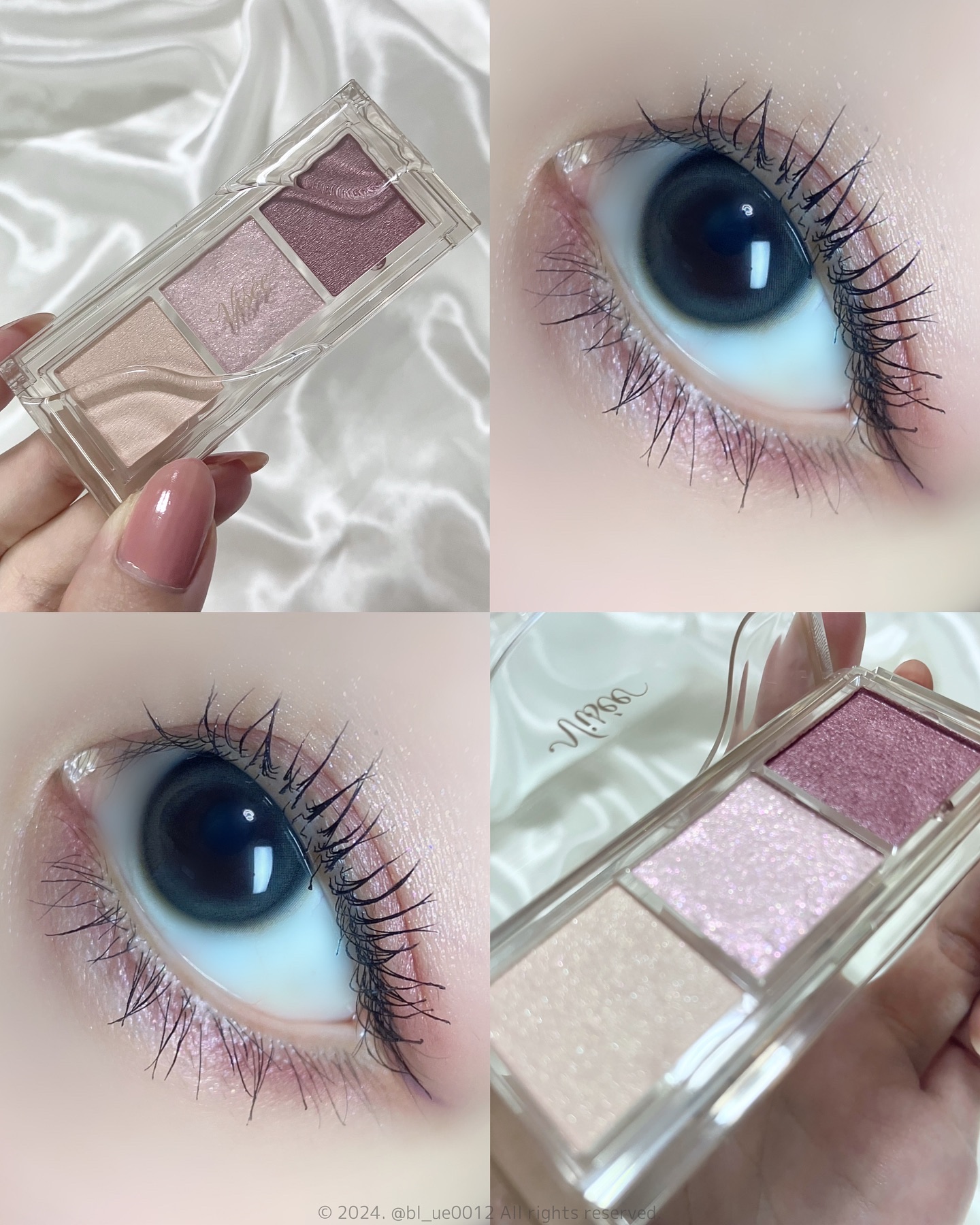 白みをたっぷり含んだカラーがかわいい💜 03 ラベンダープレジャー🫧 上段中央のシマーなラベンダービームのハイライトカラーがとても綺麗だった🥹🤍 トーンを合わせたカラー構成で異なる質感を楽しめるそんなパレットになっています💗