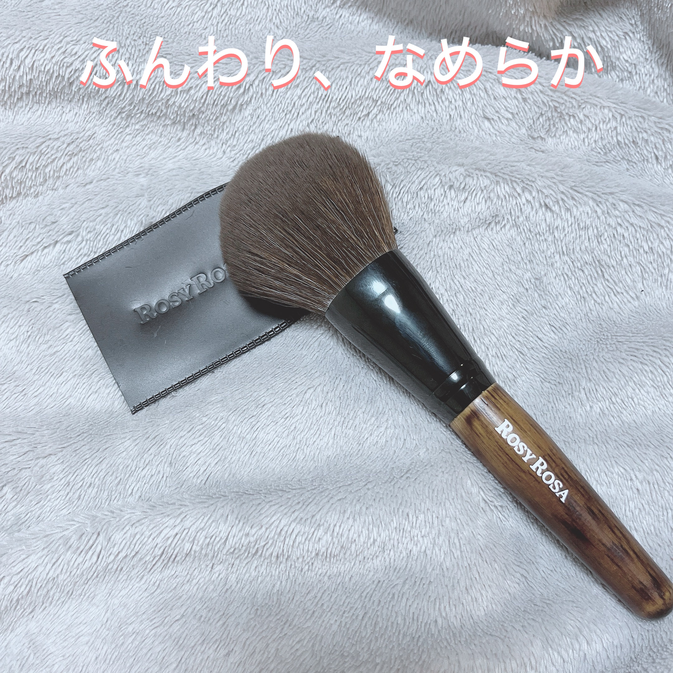 極細繊維毛をたっぷり使用した、極上な肌あたりのブラシです。 ふんわりとやわらかく、パウダーをきれいに肌にのせることができます。 ロージーローザ史上最高のメイクブラシということで、ロージーローザのその他のブラシと比べると比較的お値段もいつもよりは高めで、 2,200円でこのクオリティはロージーローザさん本当に最高😭