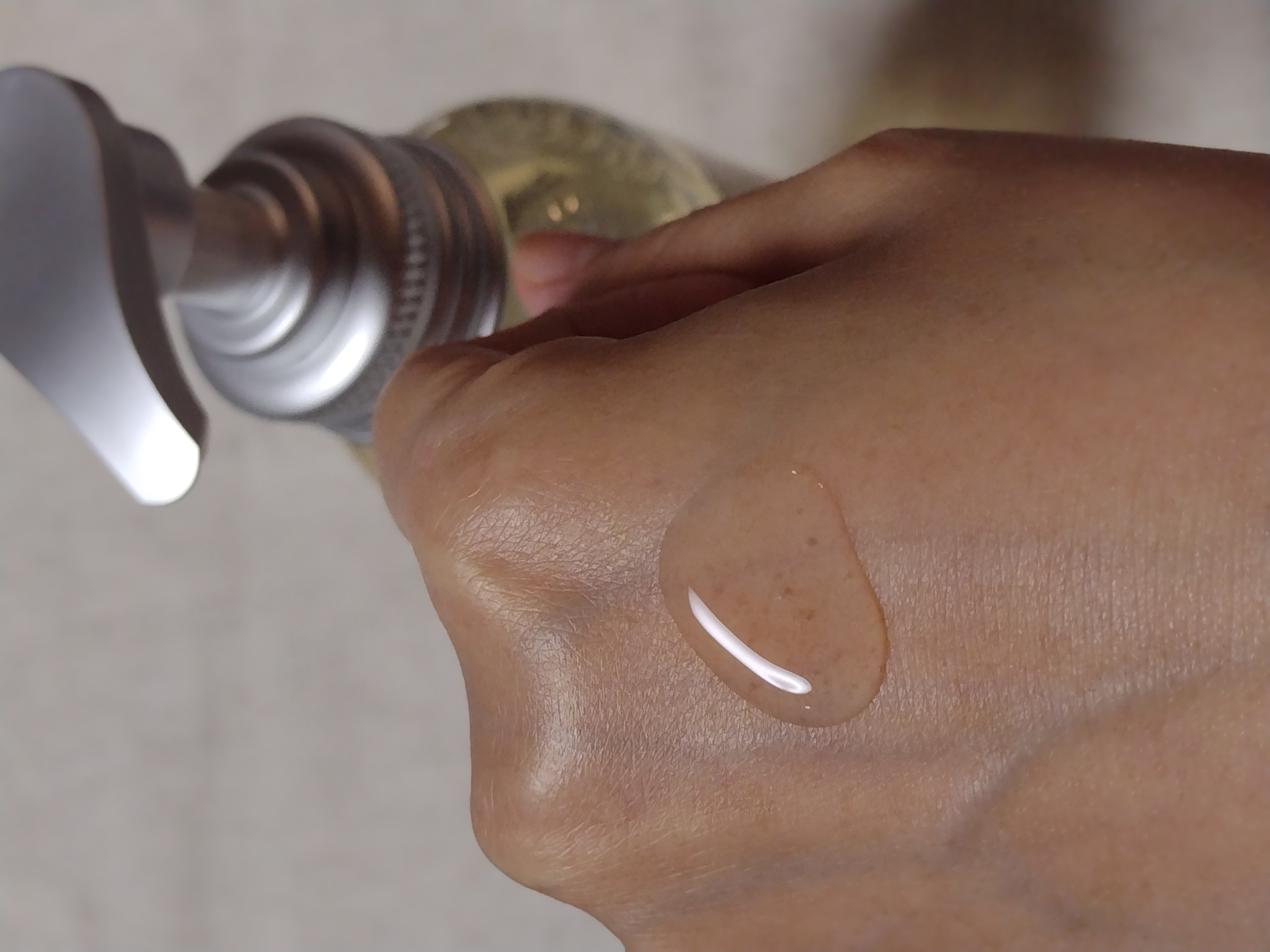 半透明のゆるめのジェルテクスチャー。みずみずしいさらっとした伸びがとても気持ちいい。 美容液は成分が濃いイメージだからとろみやぺたっとしたなじみが多い中、ここまでさっぱりしているなんて驚き。水分と油分のバランスを整え、毛穴も引き締まるから過剰...