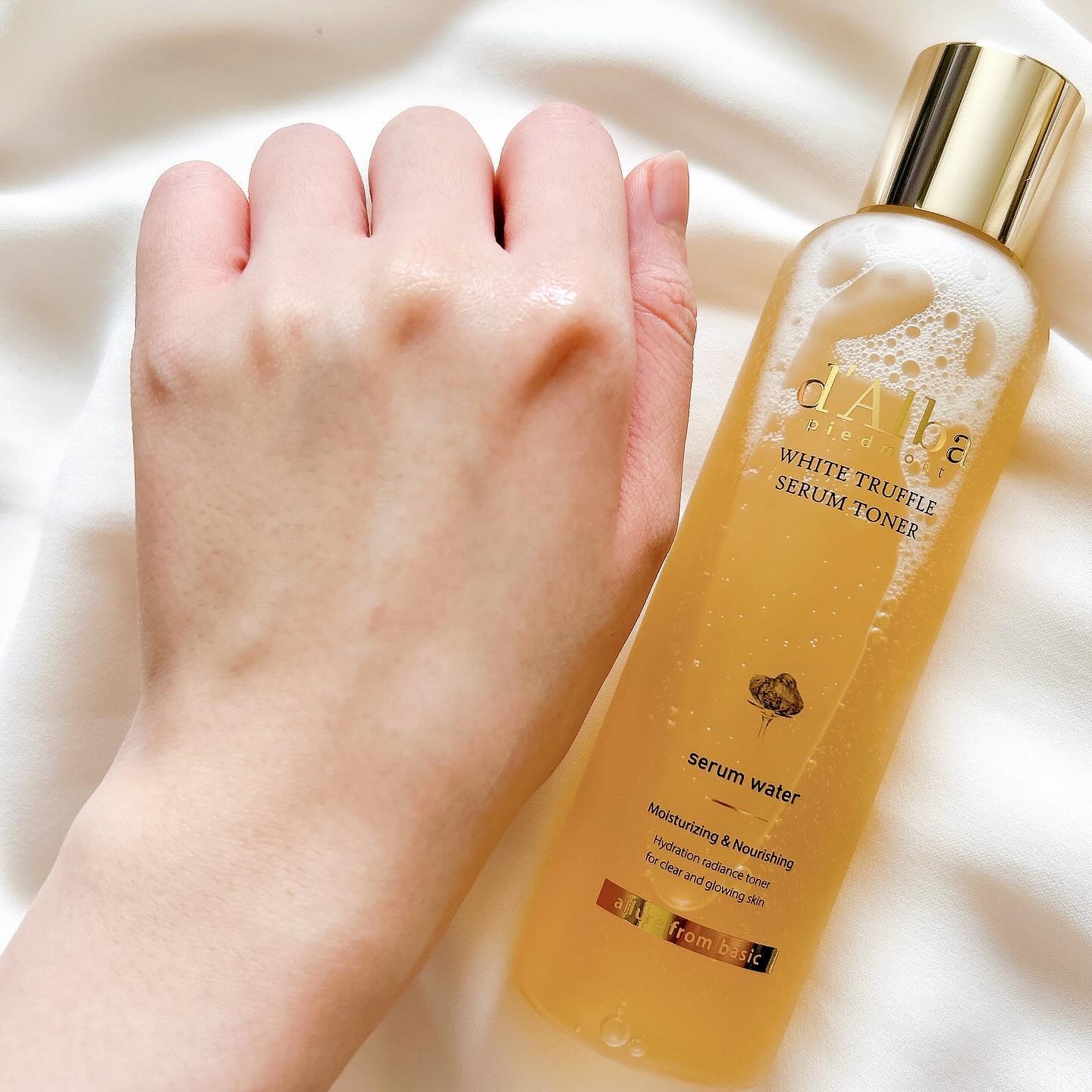 d'Alba好きにはたまらん🤤 これからの乾燥の時期にピッタリ💡 d'Alba ホワイトトリュフモイスチャライジングセラムトナーはセラムとトナーが1つに☝️ しかも1回使用後、100時間保湿持続臨床試験完了だそうですよ💡 しっとりとした水分感で、ベタつかず肌馴染みが良き👍✨