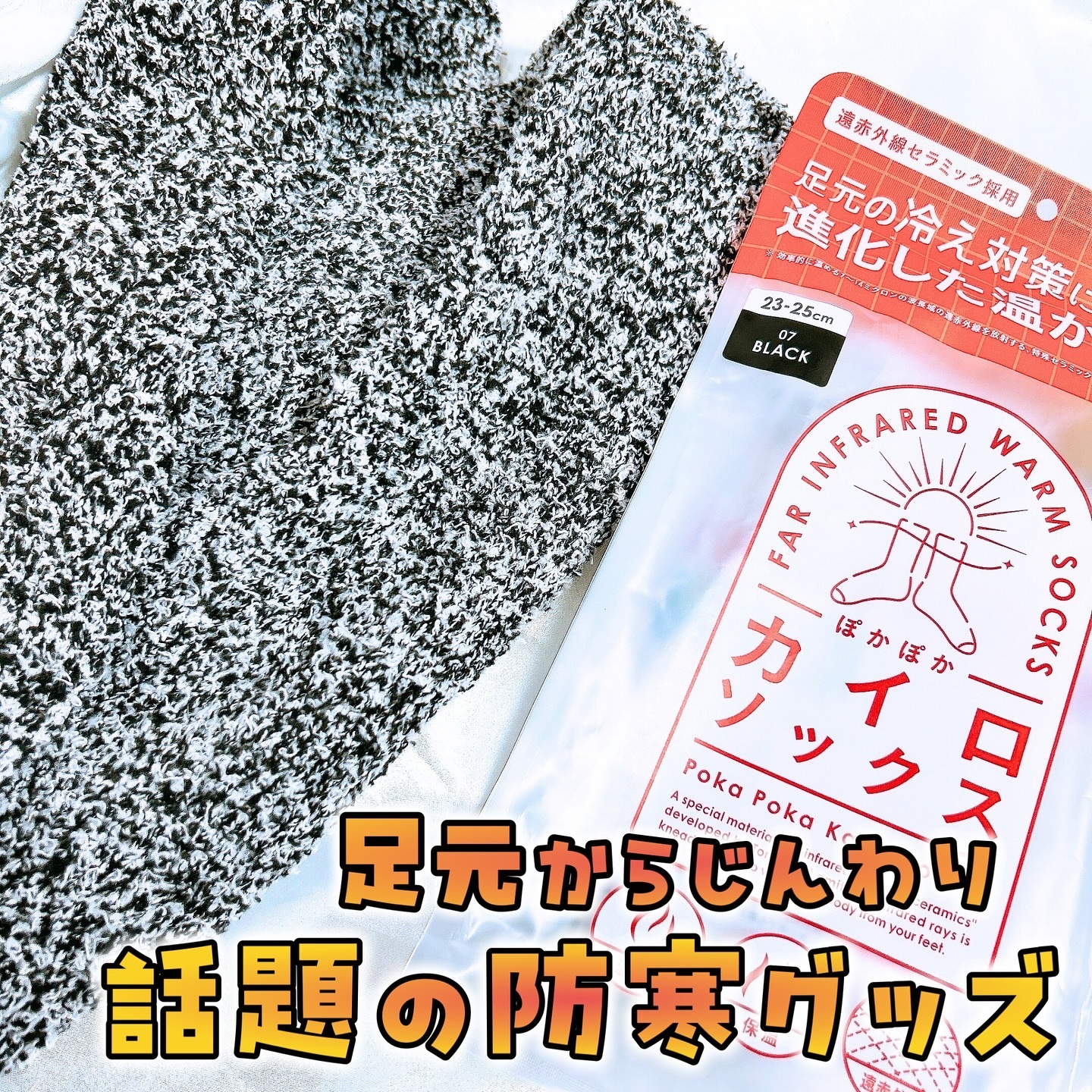 赤外線放射セラミックを練り込んだ繊維を使用で、履くだけで足元の温感+3.6℃! つま先二重構造で足指の冷えも解消というソックスとなっています◎ 可愛いデザインで履き心地良くて、ぽかぽか◎ こういう寒い日にピッタリです!
