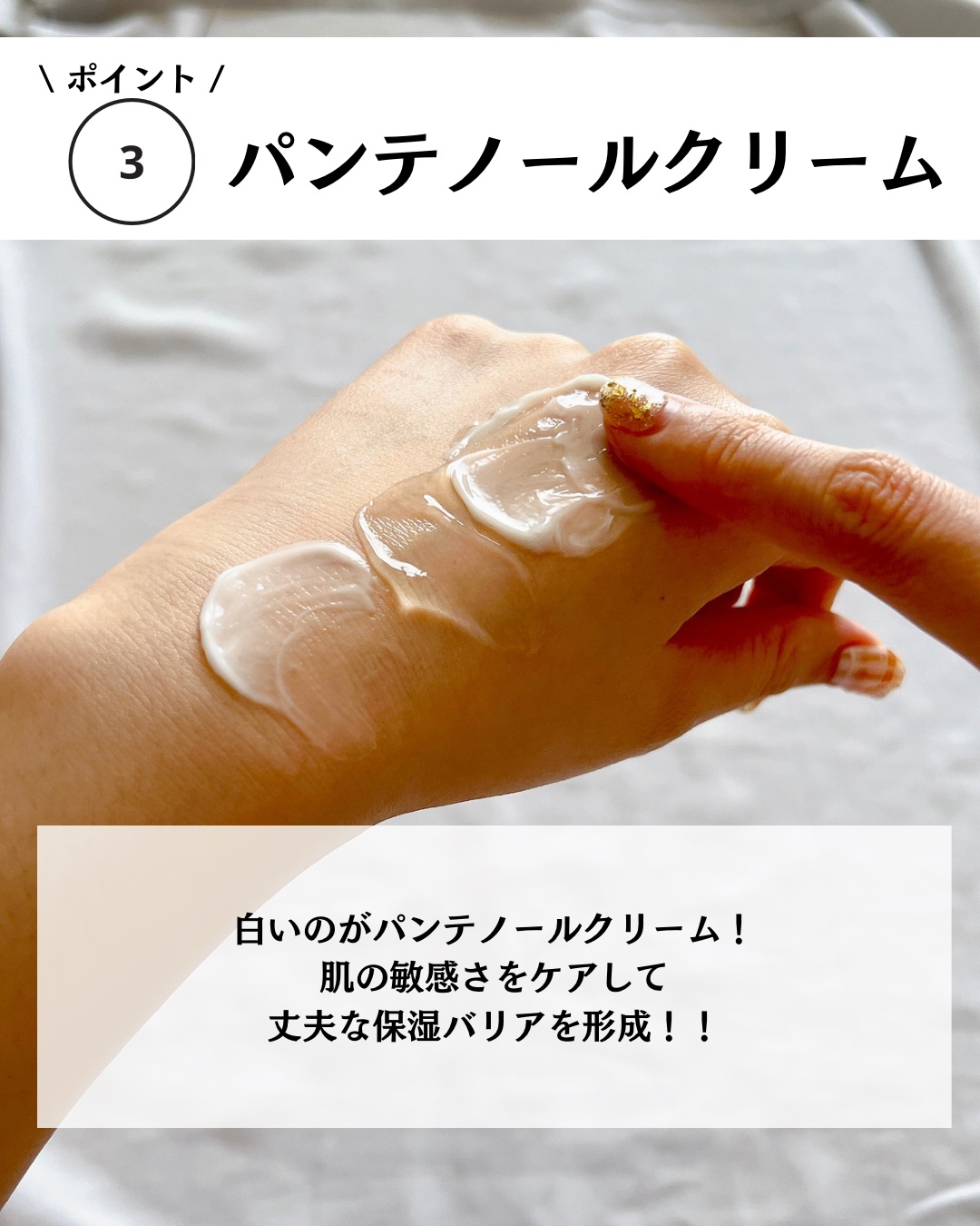 - 毎日変わる肌のコンディションに合わせて自分だけの肌レシピを作れるカスタマイズクリーム うるおいたっぷりのウォータージェルクリームと水分補給&生き生きとした肌印象に導くパンテノールクリームで同時にダブルケアができるこだわりアイテム。 べたつきなく柔らかいテクスチャーの2つのクリームが肌のコンディションを整え、もちっとハリ感のある肌へと導きます。 [使い方] 1)洗顔後、化粧水や美容液で肌を整えた後に、スパチュラで肌のコンディションによって、ウォータージェルクリームとパンテノールクリームを適量を取り、 混ぜ合わせてから顔全体に優しく塗り伸ばします。 *毎日変わる肌のコンディションに合わせて、乾燥が気になる時はウォータージェルクリームを、敏感に傾いた肌を整えたい時にはパンテノールクリームの量を多めにMIXして使用するのがおすすめです。