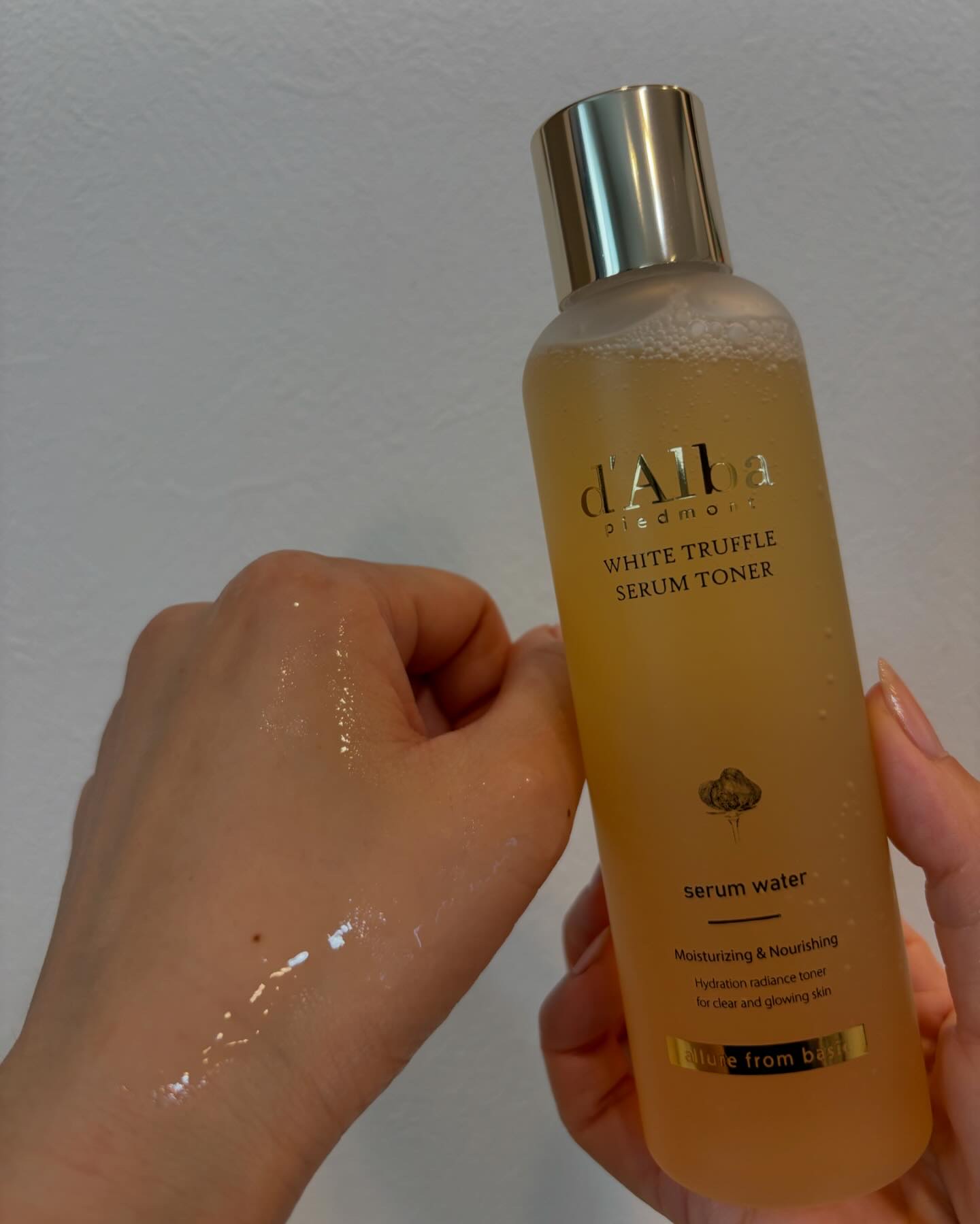 d'Alba好きにはたまらん🤤 これからの乾燥の時期にピッタリ💡 d'Alba ホワイトトリュフモイスチャライジングセラムトナーはセラムとトナーが1つに☝️ しかも1回使用後、100時間保湿持続臨床試験完了だそうですよ💡 しっとりとした水分感で、ベタつかず肌馴染みが良き👍✨