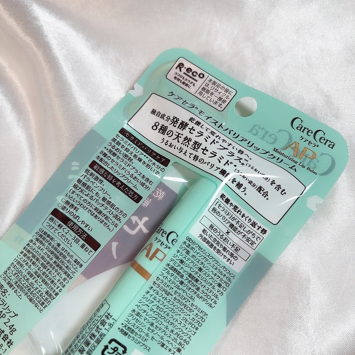 - 「ケアセラ モイストバリアリップクリーム」は「発酵セラミドプラス※1」を含む8種の天然型セラミド(うるおい成分)※2を配合したリップクリームです。 乾燥して荒れやすい唇へうるおいを与えて唇のバリア機能を補います。 敏感な唇を考えた処方が特徴で低刺激性。無香料。パラベンフリー。 敏感肌の方の協力によるパッチテスト済み※3です。 セラミドバリアケア※4で敏感な唇も使う度しっとりやわらかに。 ※1:ジヒドロキシリグノセロイルフィトスフィンゴシン、セラミド6II(うるおい成分) ※2:セラミド1、セラミド2、セラミド3、セラミド6II、セラミドEOS、カプロオイルフィトスフィンゴシン、カプロオイルスフィンゴシン、ジヒドロキシリグノセロイルフィトスフィンゴシン ※3:すべての方に刺激が起こらないというわけではありません。 ※4:セラミド(うるおい成分)を配合したリップクリーム