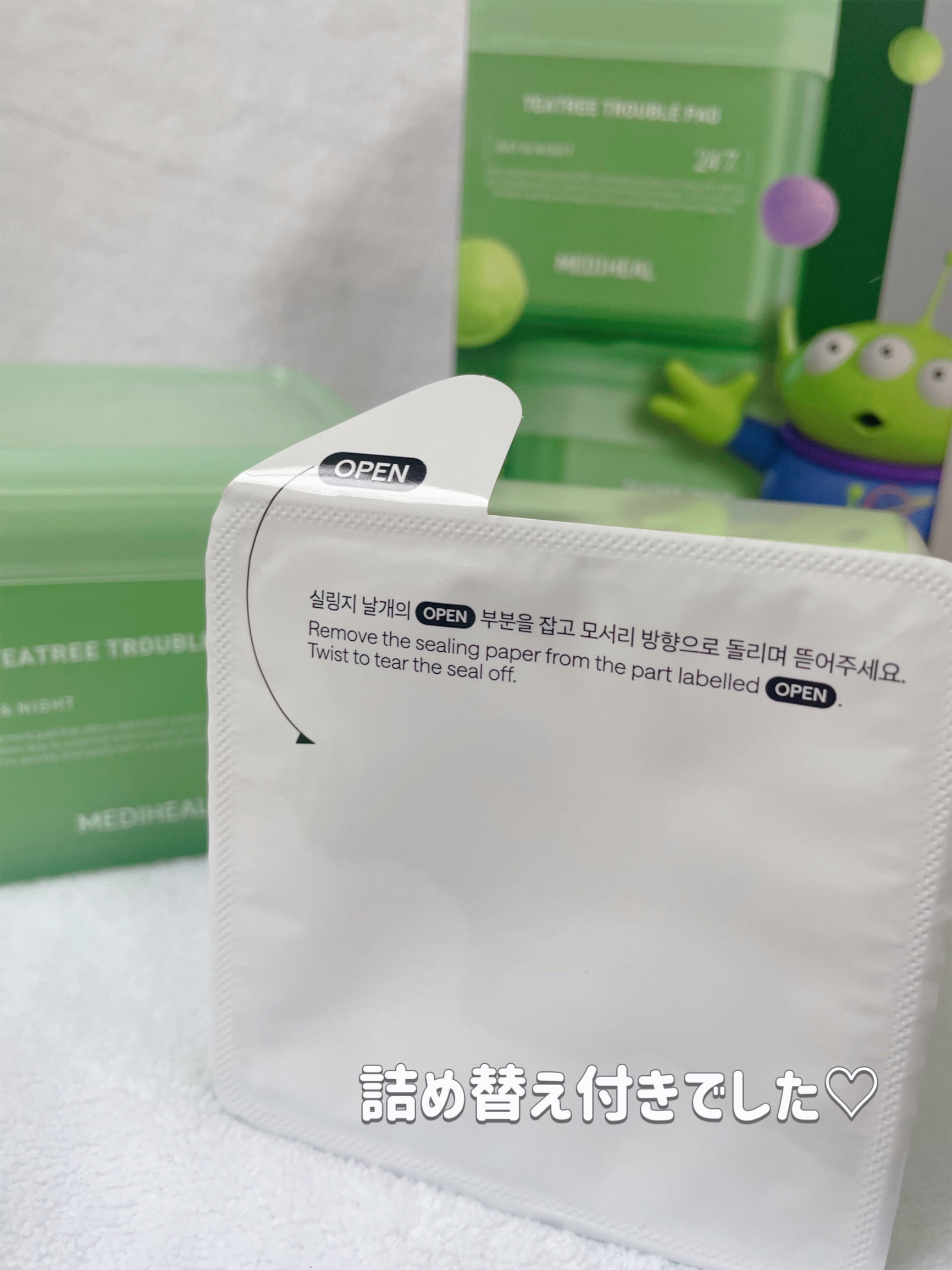 マルチに使える💖 メディヒールの独占成分✨ ティーツリーカーミングバイオーム‼️ 優しい使い心地で使いやすすぎる💟 拭き取りケアは2枚重ねて使用するのもおすすめ💕 毎日使えるトナパがあるのはとってもありがたいです🌟 このパッドは旦那も気に入っていて、ベタベタしないし、サッパリだから男の人でも使いやすいと思います🧡