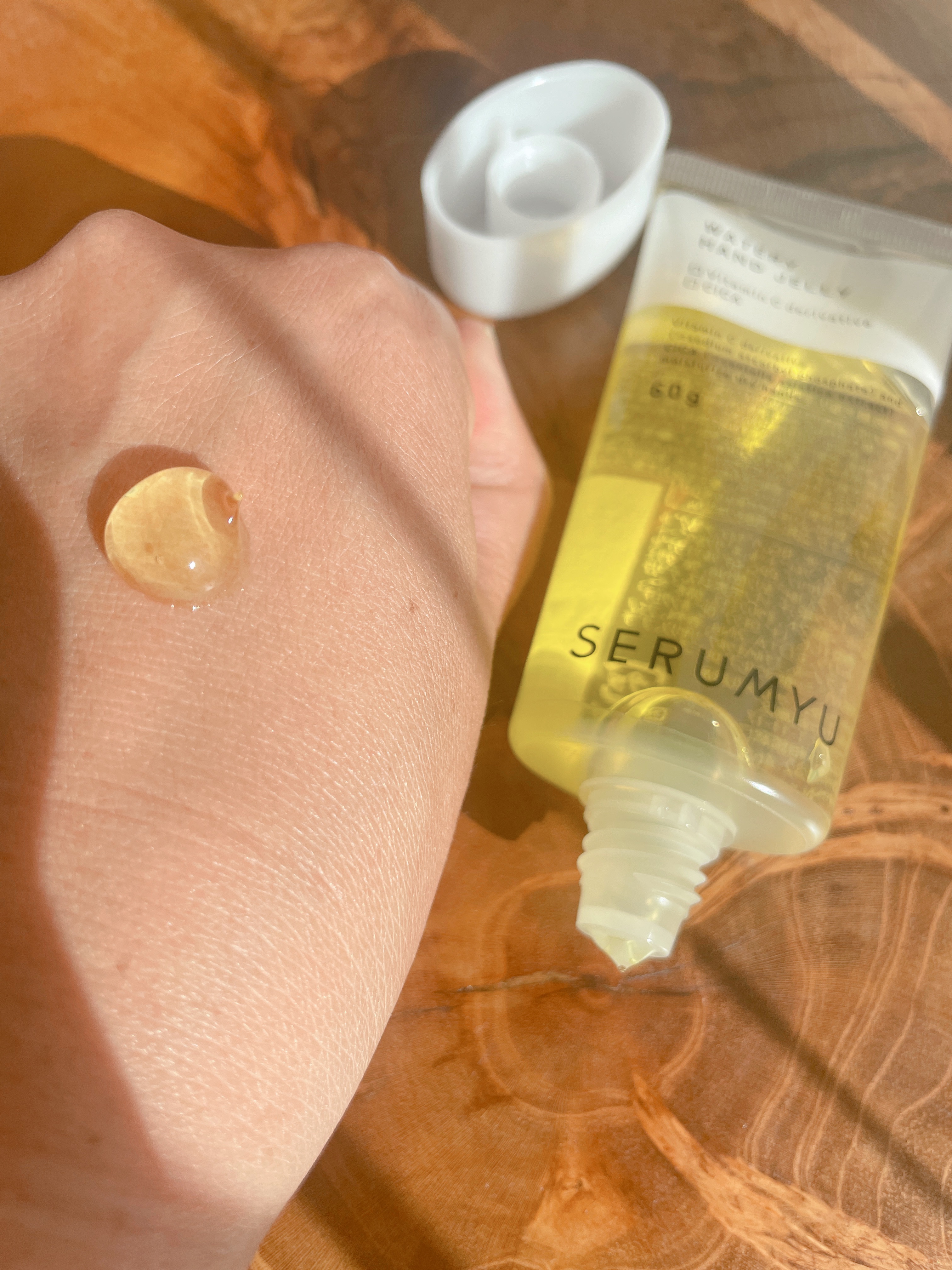 塗った後すぐにスマホが触れるハンドジェリー。 見た目が黄色ということもありほのかなレモンの香り。 黄色みのあるジェルはみずみずしくカサついたお肌に潤いを与えてなめらかな肌触りに整えてくれます。 スリムなハンドジェルなので持ち運びにも便利です◎