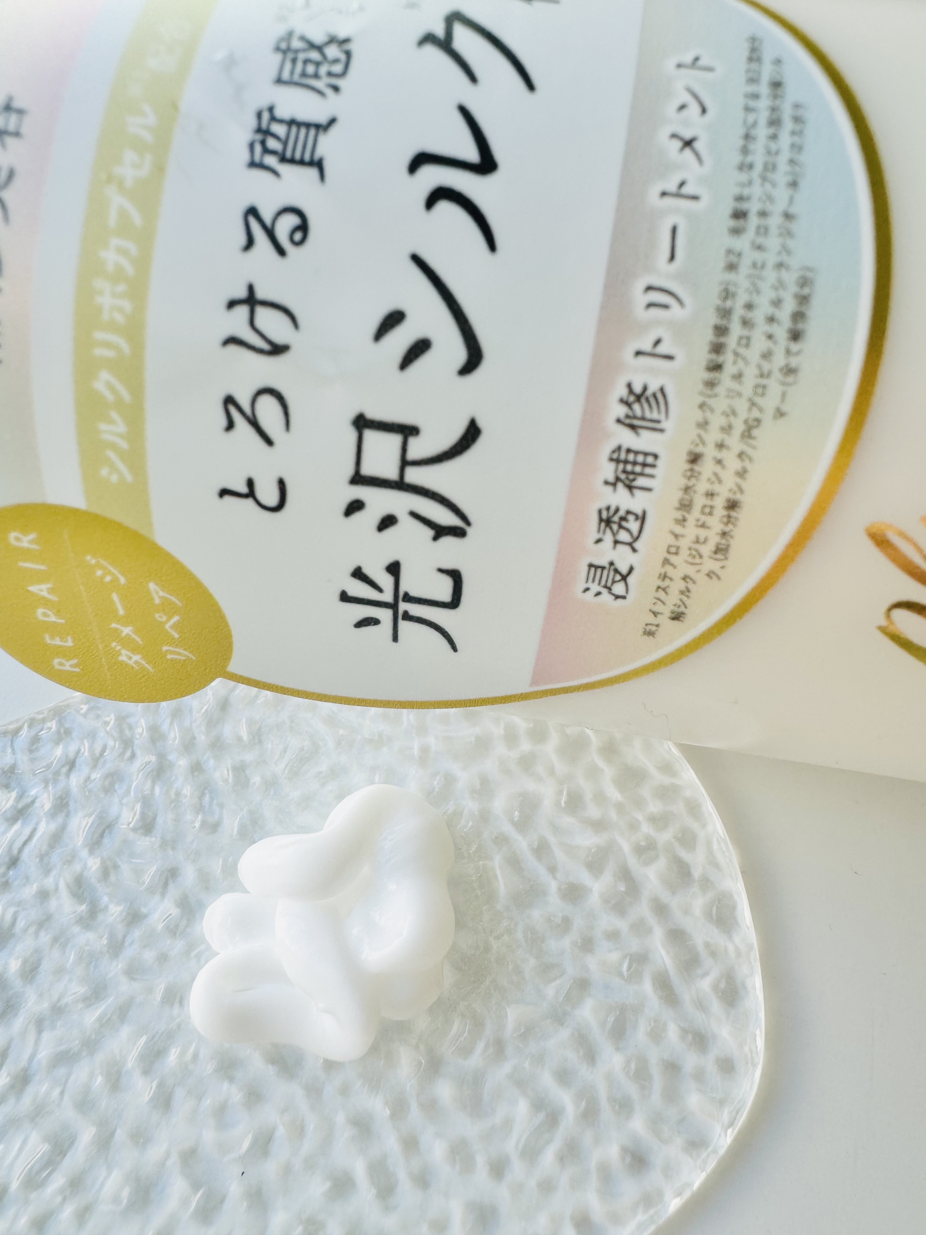 - とろけるような質感と、ダメージでパサつきがちな髪も毛先までツヤめくしっとり髪へ導く美容液シャンプー&光沢補修トリートメント。 より浸透性が高くなるカプセル化技術を採用したシルクリポカプセルを補修成分として配合。 髪の芯まで徹底補修しながらキューティクルをなめらかに整え、しっとりと潤いツヤめく髪へと導きます。 また洗いながらも髪ダメージを補修するPPT系洗浄成分を、シリーズ比で高濃度に配合。 シルク由来PPT系洗浄成分と、肌のことを考えたアミノ酸系の4種の洗浄成分とバランスよくブレンドすることでキメ細かな濃密補修泡が摩擦レスでリッチな洗い心地を実現し、髪と頭皮をいたわりながらシャンプーでも毛髪ダメージに徹底アプローチします。 カシミヤ由来のケラチンをはじめとする2種のケラチン、コラーゲン、CMC類似成分などのこだわり配合した補修成分だけでなく、美容保湿成分をたっぷり浸透させて密封補修することで、カラーや熱ダメージによるパサつき・広がり・ゴワつきなどの蓄積ダメージもしっかりケア。 ドライヤーやヘアアイロンの熱ダメージから髪を守りツヤを与える、ヒートリペア成分を配合して熱も味方に。 清楚な上品さを纏うホワイトフローラル&ペア―の香り。 2024年10月中旬 一部企業にて先行発売