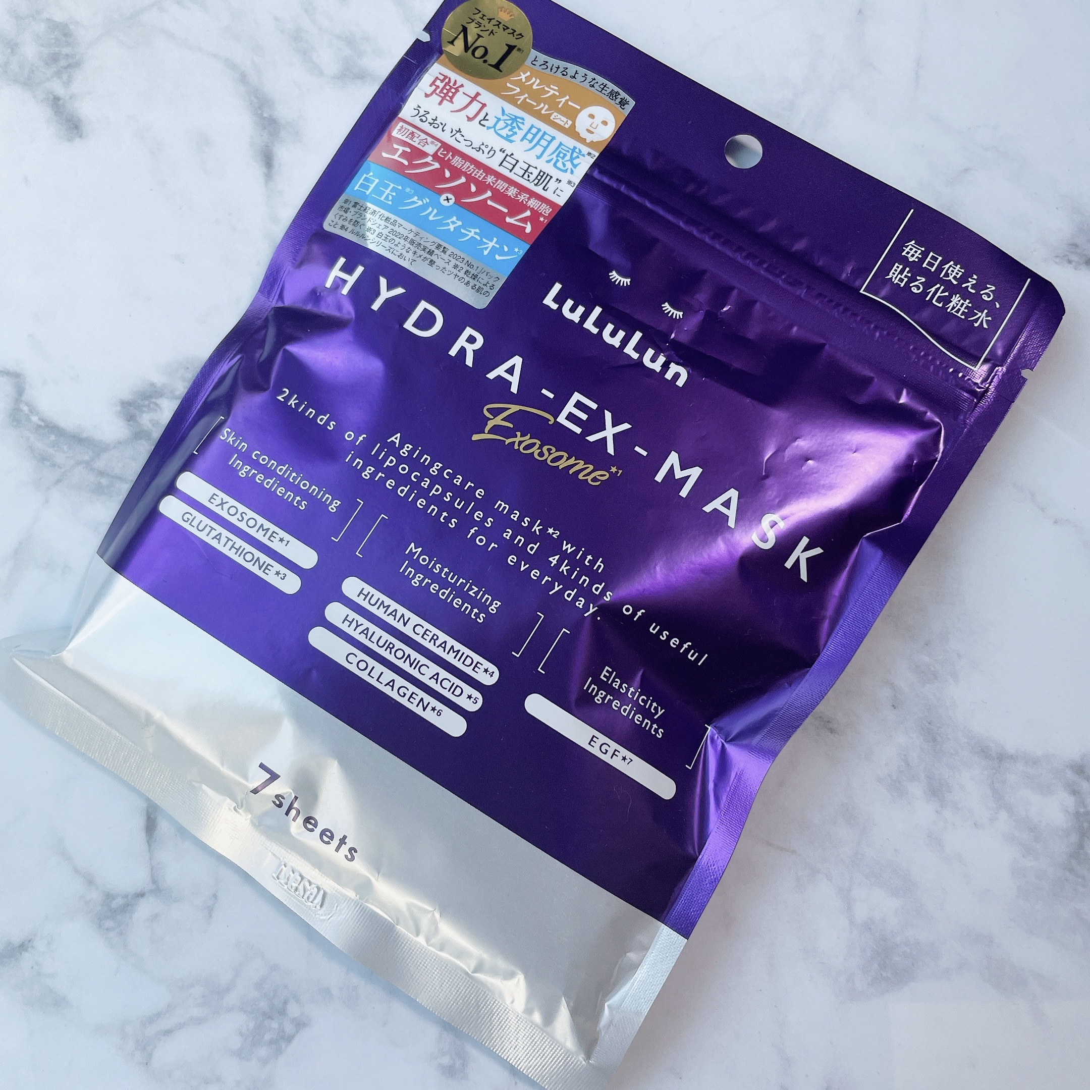 - ルルルンハイドラシリーズから新登場。うるおいにプラスするのは、「エクソソーム*1」。先端再生テクノロジーにインスパイアされた、デイリーエイジングケア※1マスクです。白玉※2グルタチオン*2をプラス配合し、弾力・透明感※3・つやめきのあるなめらかなお肌へ導きます。 (*1 整肌成分 ヒト脂肪由来間葉系細胞エクソソーム *2 整肌成分 グルタチオン、アルブチン、レシチン ※1 年齢に応じて肌へうるおいと弾力を与えるケアのこと ※2 白玉のようなキメが整ったツヤのある肌のこと ※3 うるおいを与えて、乾燥によるくすみを防ぐ)