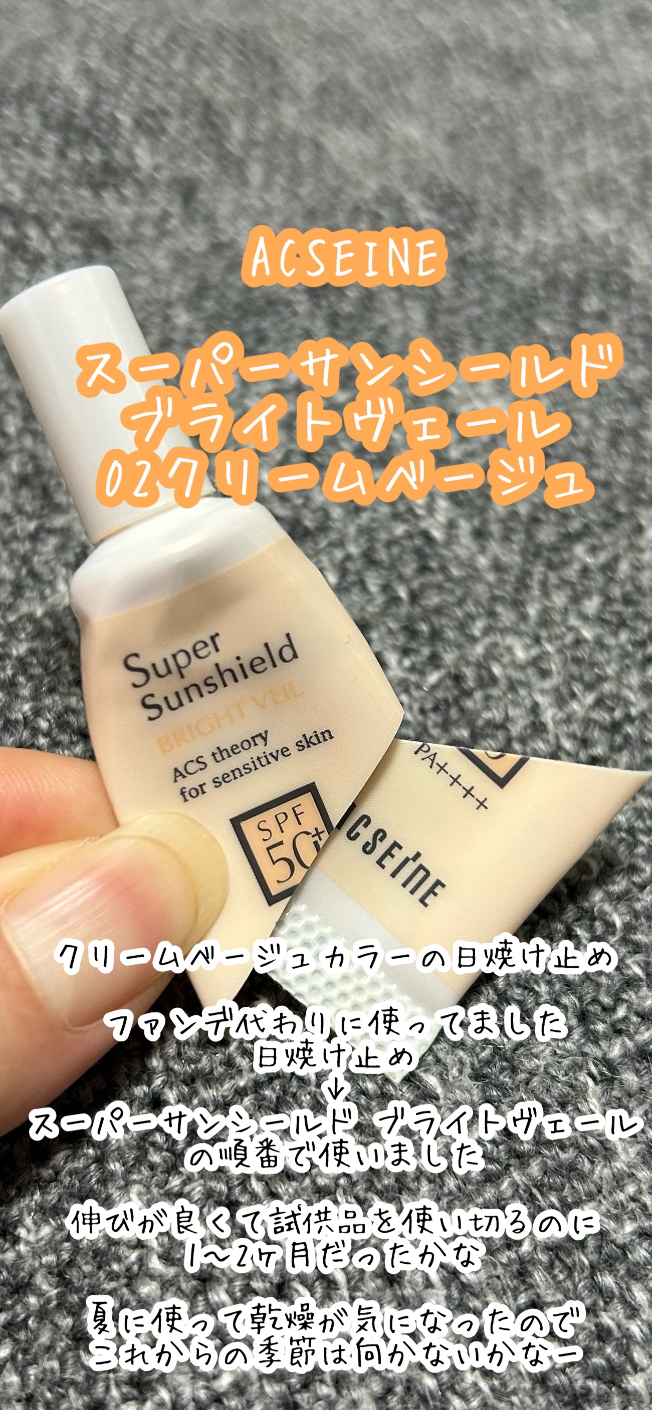 [敏感肌にも安心なUVベース✨]ACSEINEスーパーサンシールドブライトヴェール02クリームベージュSPF50+・PA++++でしっかり紫外線&近赤外線をカットしつつ、スキンケアしたみたいにしっとり感が続く優秀UV下地✨✔トーンアップしつつ...