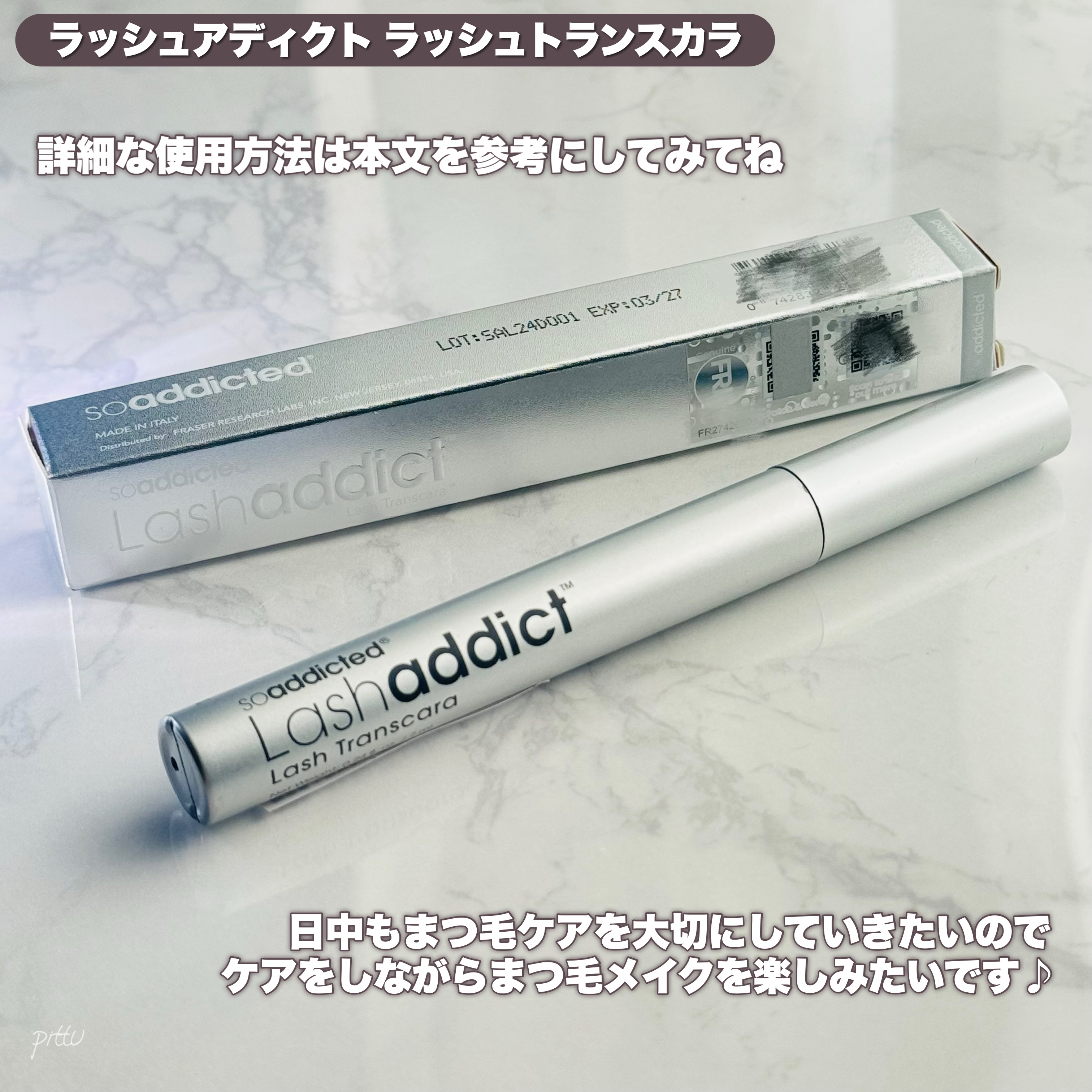 大人気(累計販売本数350万本突破)のまつ毛美容液「ラッシュアディクト」シリーズから今夏新発売された日中のまつ毛の保湿・トリートメント・カールキープを叶えるまつ毛プロテクター「ラッシュアディクト ラッシュ トランスカラ」をご紹介します。 ケラチン生成をサポートする成分(ビオチノイルトリペプチド-1(整肌成分))や天然由来ワックス(カルナウバロウ、ヒマワリ種子ロウ、ウルシ果皮ロウ(保湿成分))配合で、日中のまつ毛の保護をしながら、自然なまつ毛のカールをキープしてくれるそう。 自然な上向きのまつ毛にしてくれます。まつ毛が伸びた様な印象も!おすすめの朝用まつ毛美容液です。