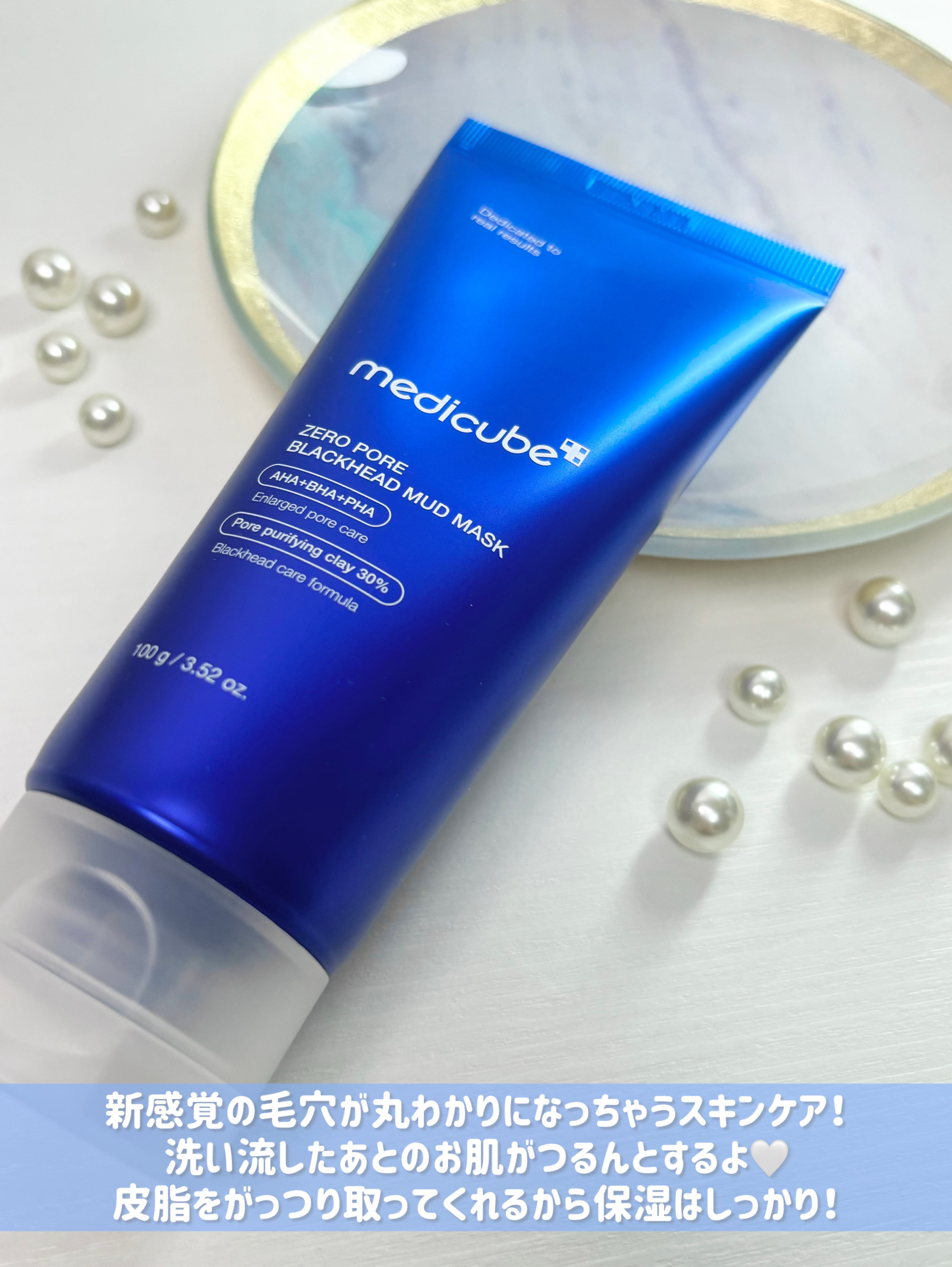 メディキューブのクレイパックです☺️ 洗い流すタイプで、AHA(グリコール酸)、PHA(グルコノラクトン)、BHA(サリチル酸)とクレイが配合されています🫧 使い方は、洗顔後に水気を取り、適量を目元・口元を除いた顔全体に等しく塗り広げ、3〜5分時間をおきます。 毛穴が気になる方はぜひチェックしてみてね🥰