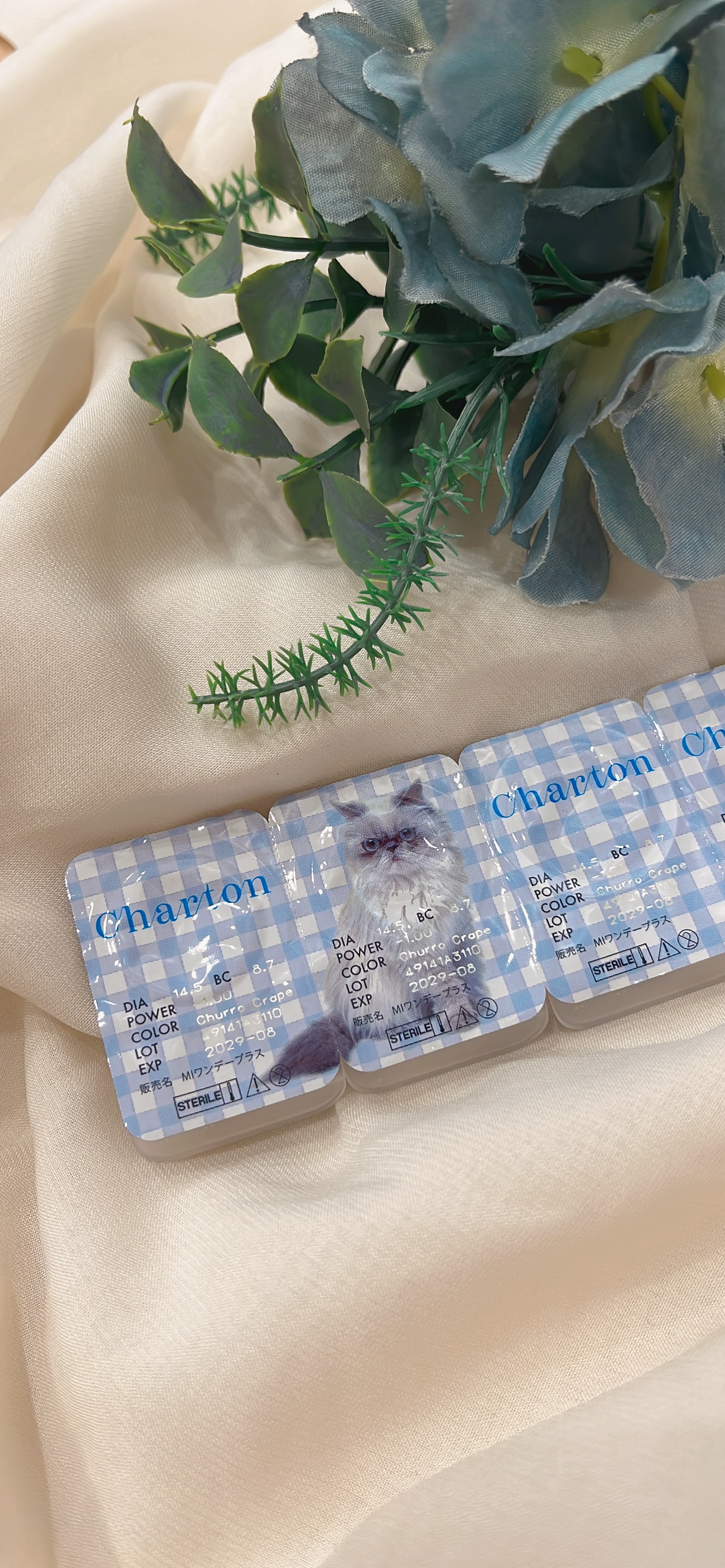 - Chaton【子猫】×Charm【魅力】 自分史上最強に可愛くいられる麗しくも可愛らしい女の子をイメージしたブランド <アイスミュール> 色素薄め透け感ブルー <コーヒーブラウニー> 細ふち大人っぽちゅるん <チュロクレープ> 太ふち×ミルクグレージュ <ビスケットスモア> 抜け感くすみベージュ <フィグコンポート> 色気漂うダークフィグ カラーコンタクトレンズの不適正使用による眼障害の危険性等などがあります。 ●コンタクトレンズは高度管理医療機器です。不十分な洗浄・消毒など不適切なケアや、長時間・交換期間を超えた装用により、アレルギー性結膜炎、角膜感染症、角膜潰瘍等の重篤な眼障害が発生する危険性があります ●ご使用前に取扱説明書を確認してください 使用上の留意事項 ●眼科医院等を受診してからお求めください ●眼に異常を感じたら直ちにレンズ使用を中止し、お近くの眼科等で診察を受けてください ●医師の指示にしたがってご使用ください ●コンタクトレンズを装用する場合、自覚症状がなくても、眼科医院等での定期検査を受けてください ●レンズに不具合がある場合は使用しないでください