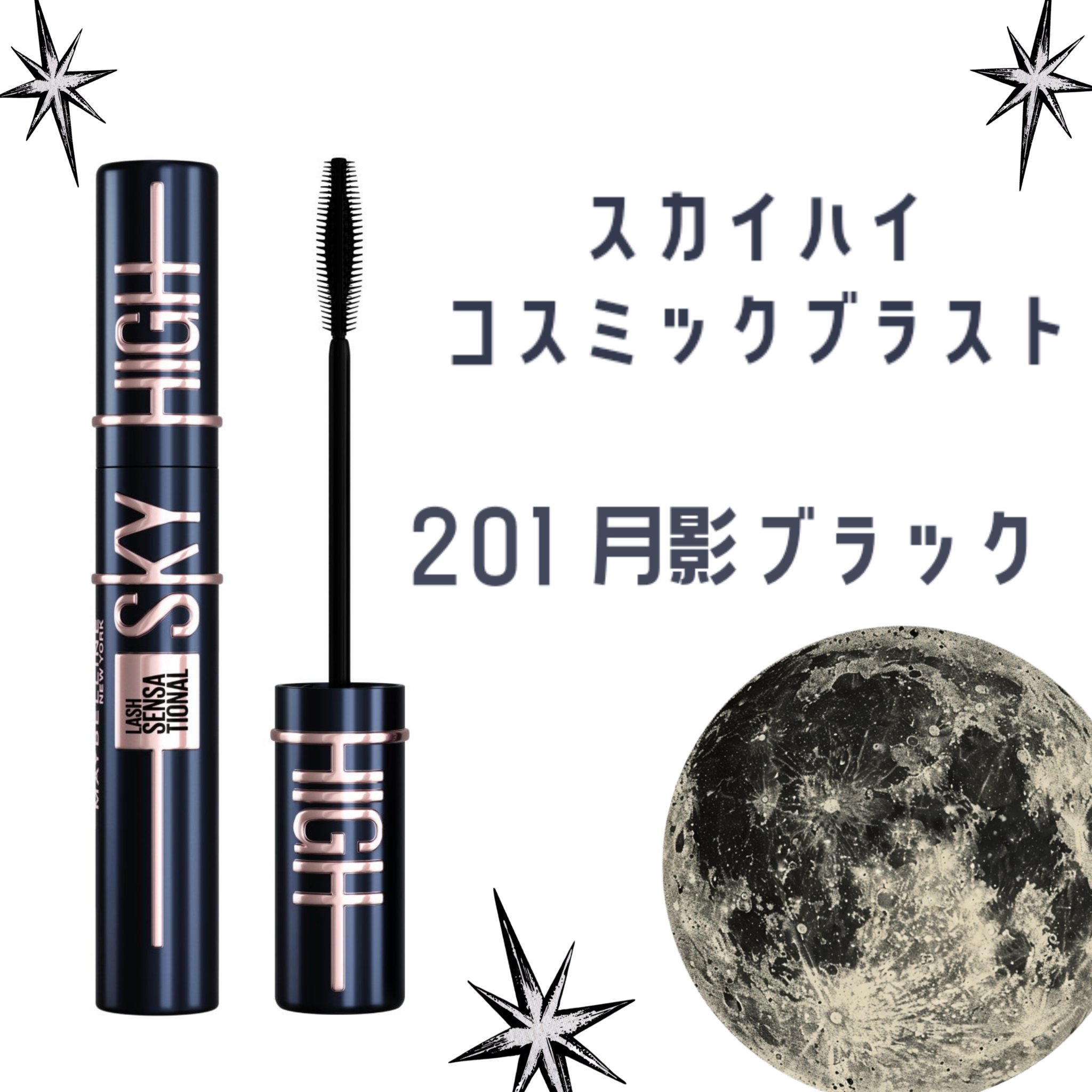 【重くない黒マスカラ!月影ブラック🌙】「MAYBELLINENEWYORKスカイハイコスミックブラスト201月影ブラック」¥1,793メイベリンのスカイハイは元々大好きで、違うカラーを愛用しまくってるのですが、今回初めてコスミックブラストの2...