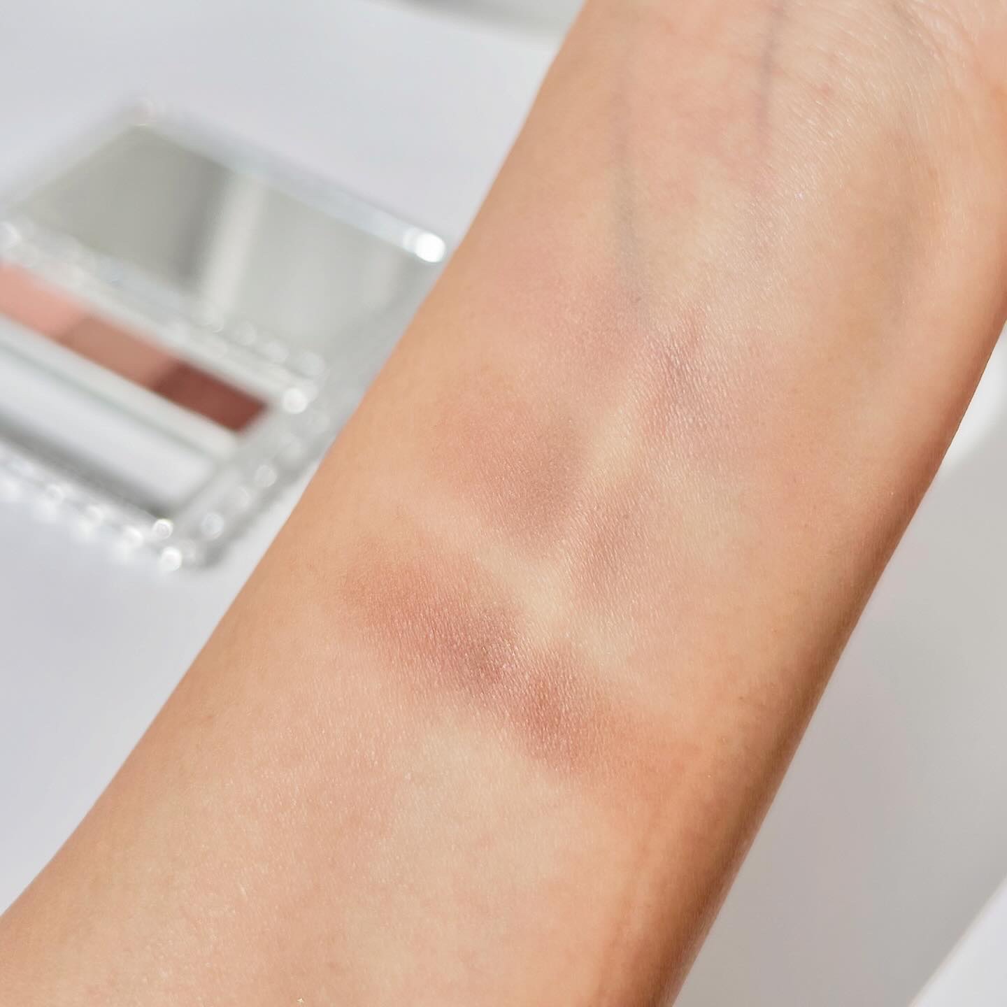 このカラー見ての通りとっても使いやすくてかわいいよ🥹 涙袋にのせると自然なぷっくりとした涙袋ができる 目のどこに塗ってもパッと華やかに明るくしてくれるカラー このカラーがキーポイントな気がする! ブラシで入れるかチップで入れるかによっても雰囲気を変えられる魔法のカラー 個人的に締め色って苦手でほとんど使わないんだけど、スキニーリッチシャドウの締め色は使っちゃうんだよねぇ… 透け感があるのでブラシでふんわり入れてもグラデーションになるし チップでのせるとアイラインっぽくも使える◎ 今回は付属のダブルエンドのブラシの細い方でアイラインっぽく引いてメイクしてみました👀 この付属のブラシがまた使いやすい! 毎日メイクにも使いやすいローズブラウン🥀