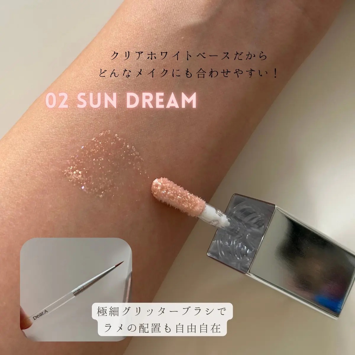 細か〜いラメの中にスパンコールのような大きさのグリッターも!偏光カラーだから色んな見え方をしてくれます😻 付属の極細ブラシが優秀!狙ったところに“置く”ことができます。 おすすめの使い方は涙袋に細くのせるのと、アイライン上にラメラインをかくのも好き!