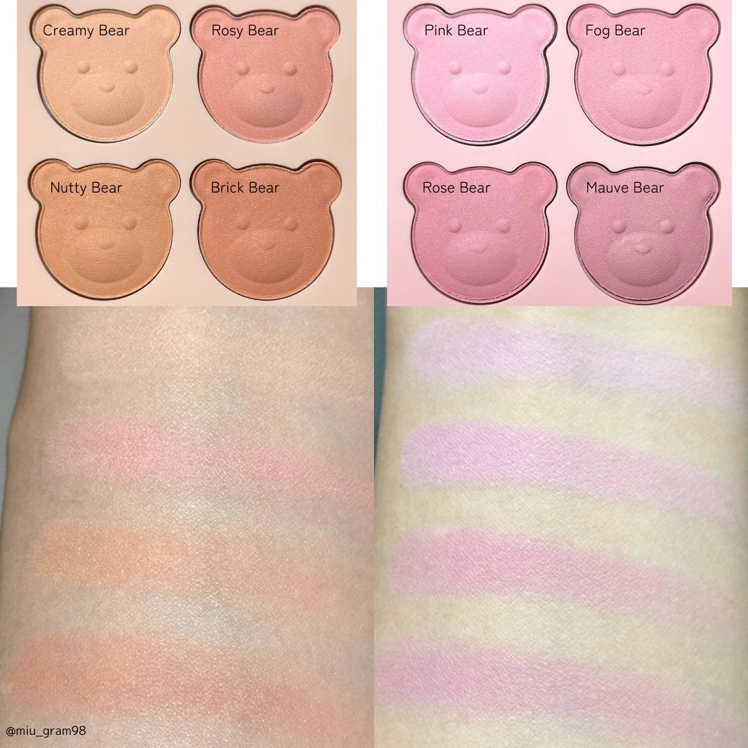 dasiqueの最新作「マイベアコレクション」シリーズ🧸🤍 まず質感が面白い!粉タイプかと思ってたが、実際はぷにぷにした、ジェルのような質感で面白い✨ くまさん🧸が可愛いだけではなくて、dasiqueのアイシャドウって粉質も細かいし、発色もちょうど良い✨ スウォッチも見てみてくださいね🐻 16号はイエベさん向けのウォームトーンピンク&オレンジカラーで秋冬使いたくなる色味