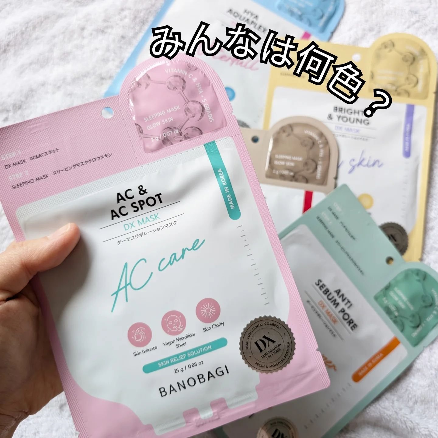 BANOBAGIバノバギDXマスク全5種類¥2,7001箱7枚入り◾︎AC&ACスポット◾︎アンチセボムフォア◾︎カフェイン&ファーミング◾︎ヒヤアクアフレックス◾︎ブライト&ヤング☝🏻̖́-ポイント・自分の肌悩みに合わせたマスクを選べる・...