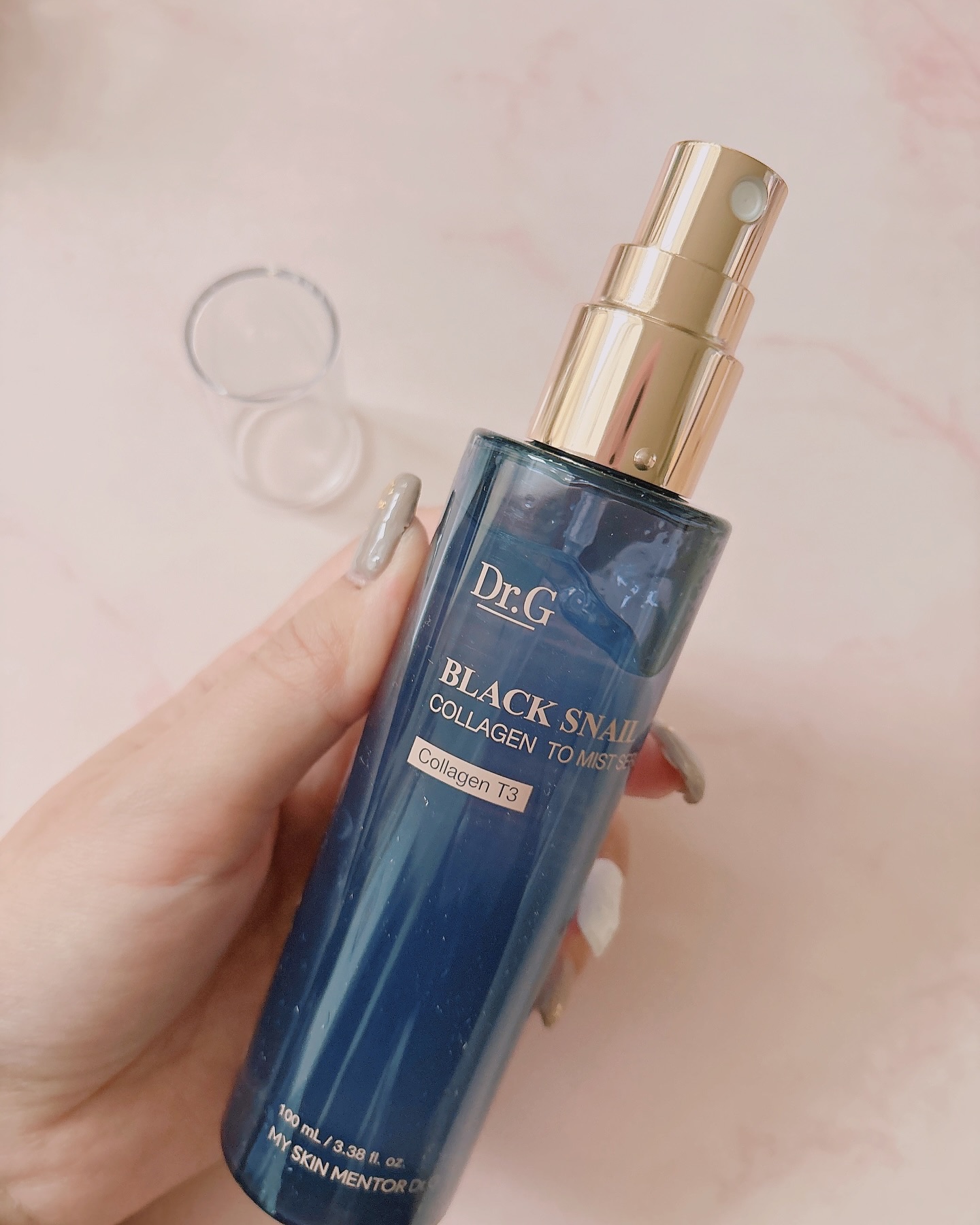 ブラックスネイルが配合されているので、肌にしっかり栄養を与え、T3コラーゲンという、人が持つコラーゲンに極めて近いドクタージーの独自成分で肌にハリや弾力を与え、コラーゲンの生成を促進するドクタージーの独自成分アクティブムチンが含まれた、とても贅沢なミストセラムです。 霧のような細かいミストでフワッと顔に吹き掛けれます! ミストオイルではないのでベタつかず、肌馴染みよい。 ブラックスネイルコラーゲントゥーミストセラムはミストは日本での発売後、1週間で1,000個が売り切れになるほど、注目されているミストセラムなんだって!