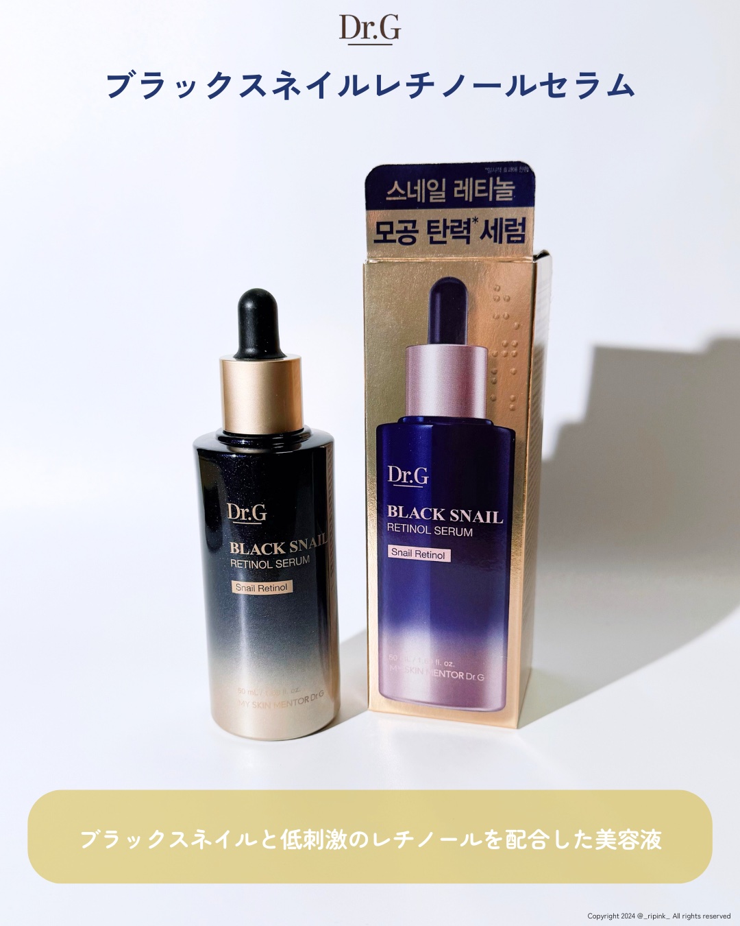キメ細かなぷるっとハリ肌を目指せるブラックスネイルシリーズ🫧 セラムに配合されているブラックスネイルレチノールはDr.G独自に開発した成分でこれまでの一般的なレチノールとは異なり肌への刺激は抑え、効果はより発揮するという素晴らしい処方を叶えたんだそう! 特に翌朝の肌のキメが細かくなったような お化粧のりがアップしたような感覚が嬉しかったです🫧 ヒアルロン酸やグルタチオン ナイアシンアミドまで配合で保湿力が高くスキンケア効果も期待できるのが嬉しい💭🫧