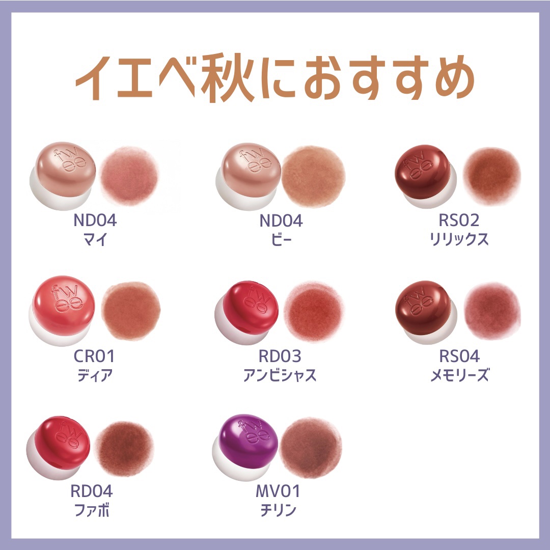 パーソナルカラー&メイク別まとめ💕fweeリップアンドチークブラーリープリンポット¥1,980♡マットでスフレやリップアンドチーク♡滑らかに溶け込みじゅわっとした血色感を演出♡ふわふわテクスチャでグラデリップもお手の物後で見返せるように保存し...