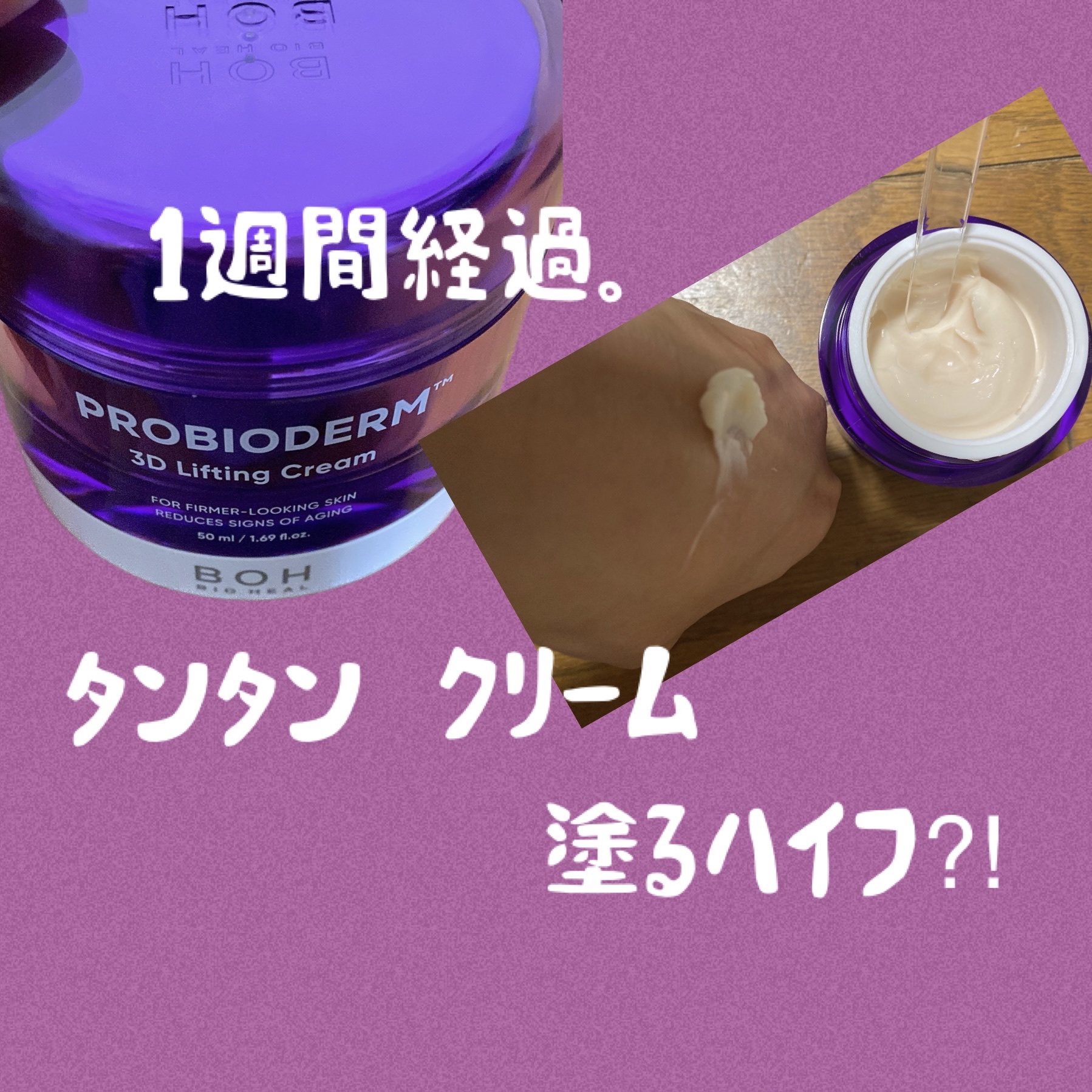 - プロバイオダーム™ 3D リフティングクリーム ・既存のタンタンクリームが、より一層のハリ弾力ケアができる商品としてパワーアップ※! ★プロバイオダーム™ 3Dリフティングクリームリニューアルポイント★ ①BIOHEAL BOHが厳選した乳酸菌*のみ配合した独自保湿成分!「プロバイオダーム™」 BIOHEAL BOHの厳しい審査のもとに選び抜かれた肌バリアをサポートする独自の乳酸菌*でハリ弾力ケアを! →キーワード #ハリ活乳酸菌 *厳選した乳酸菌:ラクトバチルスプランタラム&ラクトバチルスラムノサス&ラクトバチルスロイテリ(全て保湿) ②肌本来の弾力維持に欠かせない成分をプラス!肌が持つ成分を補うことで、ふっくらうるおった肌のハリ感をキープ ③ペプチドが12種から17種に!肌バリアを形成。素肌をすこやかに保ちます。 ・もちっと密度の高いクリームで保湿&ハリケア。 バイオヒールボ独自の技術で肌表面をピンとハリをあたえ、よりハリ感が得られるテクスチャーを実現 ・3Dと訴求しているように、ふっくらうるおい感のある多面的な弾力ケアができることから、韓国語でしっかりハリのある様子を表現するタンタン(탄탄)のワードと組み合わせて「3Dタンタンシクリーム」という愛称ができました。 ・もちっと密度の高いクリームで弾力のある素肌に導くエイジングケア※2クリーム。 ※同商品リニューアル前に比べて ※2年齢に応じたケアの事