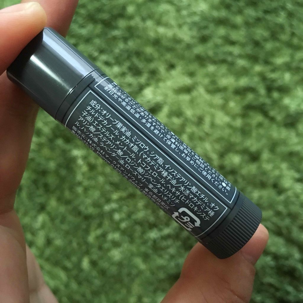 - オリーブ果実油、ミツロウ、シア脂、イソステアリン酸エチル、オクチルドデカノール、カカオ脂、(マカデミア種子油/水添マカデミア種子油)エステルズ、メントール、トコフェロール、ヘキサ(ヒドロキシステアリン酸/ステアリン酸/ロジン酸)ジペンタエリスリチル、ハッカ油、ラベンダー油、ローズマリー葉油、ハチミツ
