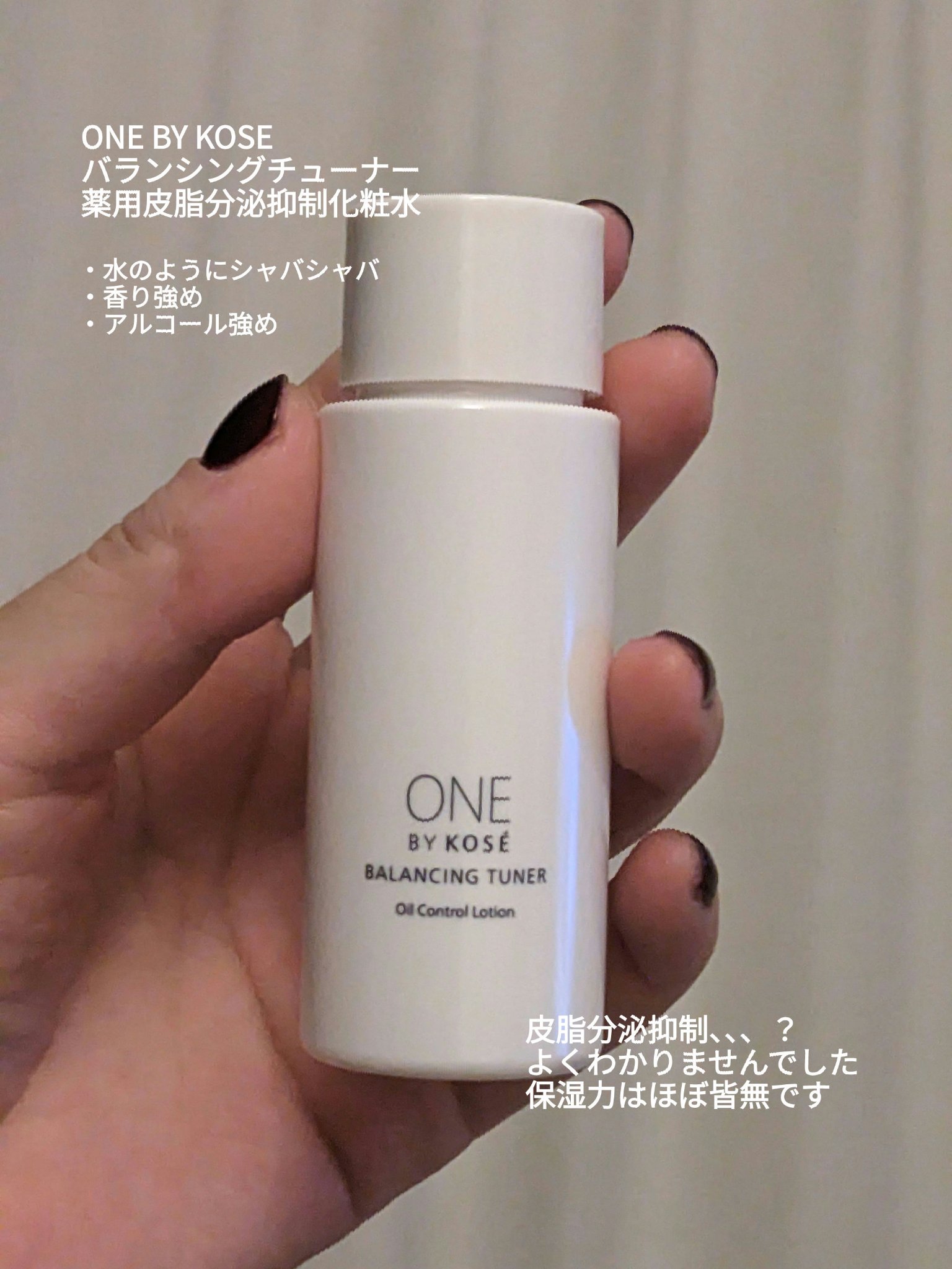 - テカリから解放されたい、その肌に。皮脂の発生源に効く化粧水。 これからは、取り去るだけの、その場しのぎのケアではなく、「テカリをもとから抑える」ケアを。 バランシング チューナーとは? ●有効成分ライスパワー®️ No.6 配合 日本で唯一、毛穴の奥の皮脂腺に効き、皮脂の分泌を抑制する薬用化粧水。テカリ・ベタつき、毛穴目立ちなどを引き起こす過剰な皮脂を減らして、 理想的にコントロール。乾燥も防いで、油水分バランスの整った肌に導きます。 ●新発想。皮脂悩みを「根本ケア」 Tゾーンのテカリや小鼻まわりの化粧崩れなど、くりかえす数々の皮脂トラブルの根本にアプローチ。根本からケアするという新発想で、あぶらとり紙やティッシュなどの“取り去る皮脂ケア”から解放されたような、もうテカリに悩まない肌をかなえます。 ●ダイレクトエフェクト処方採用 ライスパワー® No.6を毛穴の奥の皮脂腺にダイレクトに効かせる処方。ライスパワー® No.6が肌に吸い込まれるように浸透し、しっかりうるおいを続かせながらもスベスベひきしまった肌をかなえます。 ・スキンバランシング成分配合。 キメを整え、毛穴を目立たなくします。さらに肌トラブルまでも防ぎ、すこやかな肌をたもちます。 ・心やすらぐ爽やかなグリーンフローラルの香り ・無着色、弱酸性、オイル(鉱物油)フリー ・アレルギーテスト済み、ノンコメドジェニックテスト済み(ニキビのもとになりにくい処方) ※すべてのかたにアレルギーが起きない、コメド(ニキビのもと)ができないというわけではありません。 ◆使用方法 ●朝・夜、洗顔後にお使い下さい。 ※ONE BY KOSÉ 薬用保湿美容液をお使いいただく場合は、薬用保湿美容液のあとに本品をお使いください。 ●コットンまたは手のひらに500円玉くらいの量をとり、パッティングするように肌になじませます。