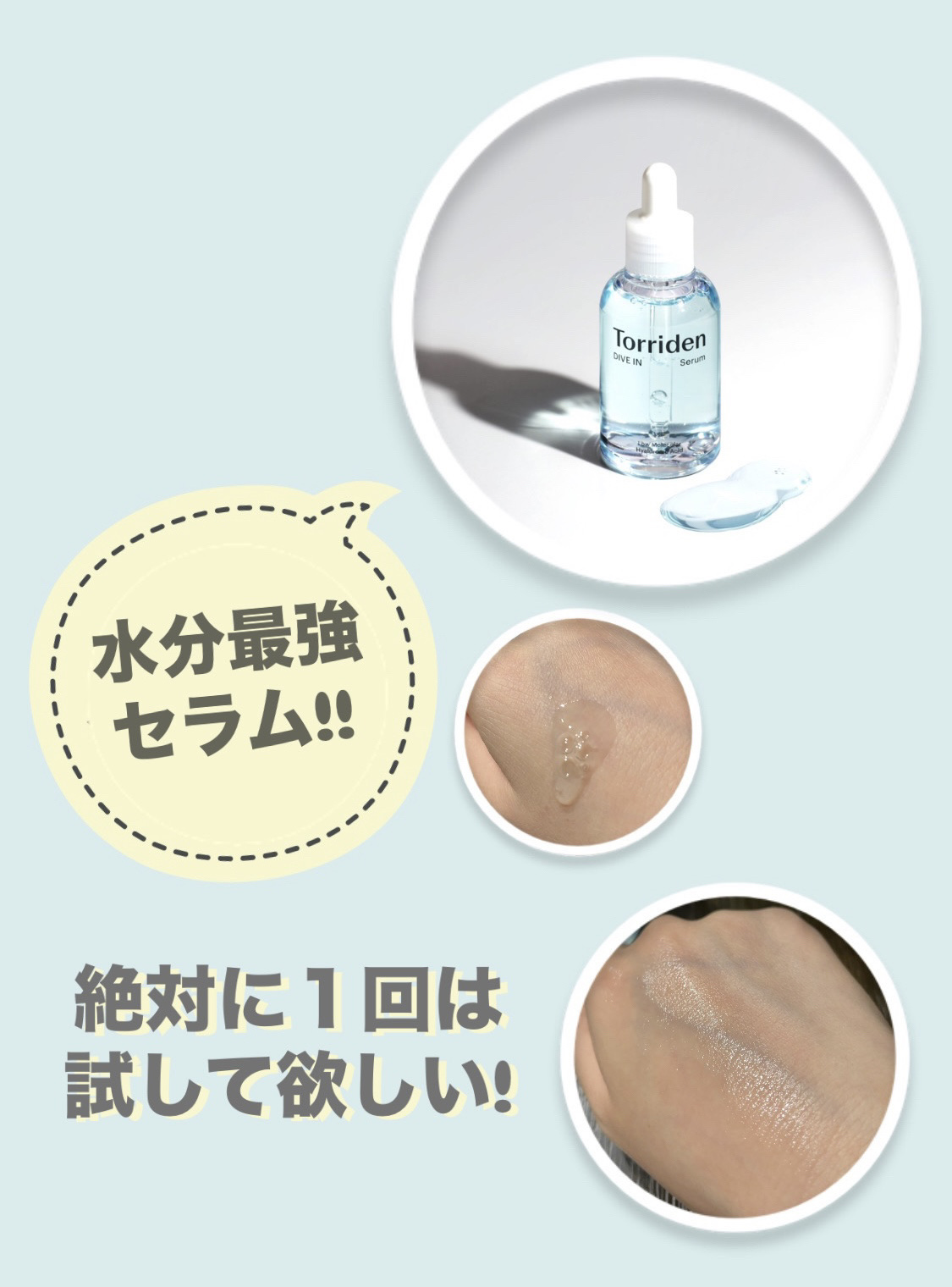 TorridenDIVEINSerum韓国で大人気‼️口コミサイト1位の美容液✨角質層まで潤い自信が持てる肌へ✨しっとり保湿、水分チャージ、導入美容液🩵肌表面から内側まで水分チャージ1回の使用で48時間の水分保水力✨導入美容液としても使えるダ...