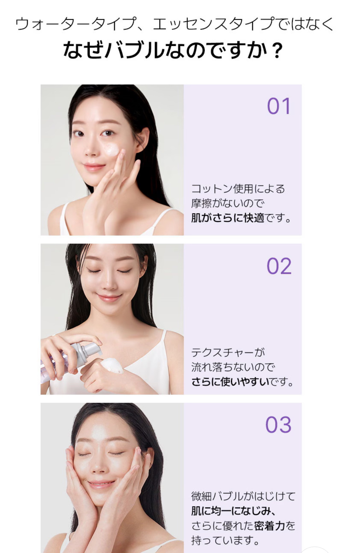 泡で塗るトナーは初めて。 トロミはないのに、泡になることで液垂れせず肌にとどまる。とても使いやすいです。 ペプチドが12種類入っていて、保湿が良いけど、ベトつかず、混合肌に相性が良いトナーだと思いました。 泡トナー。使いやすいのがとにかく良い。