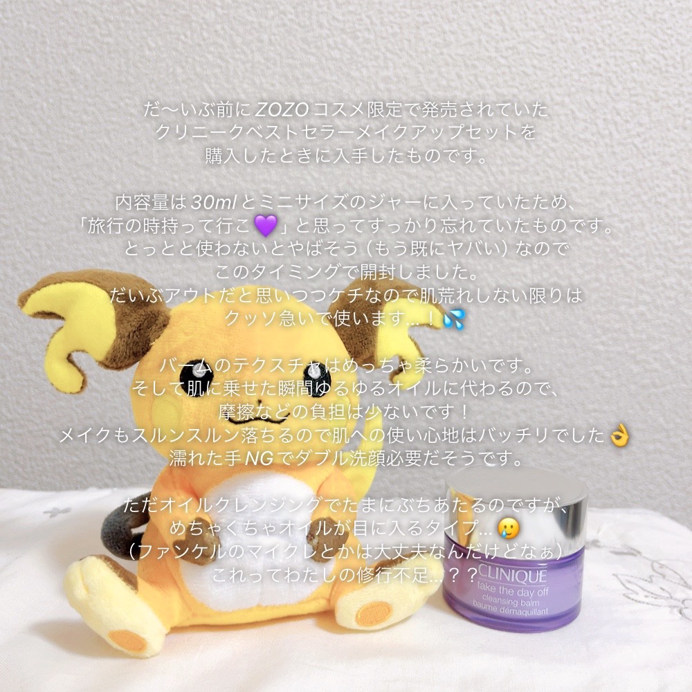 「リピなし有名クレンジングバーム」❥CLINIQUE❥テイクザデイオフクレンジングバーム-30ml❥1430円(税込)気になっていたデパコスクレンジングのミニサイズをZOZOで購入してみました。結果現品を買うことはなさそうですが、人気のわけも...