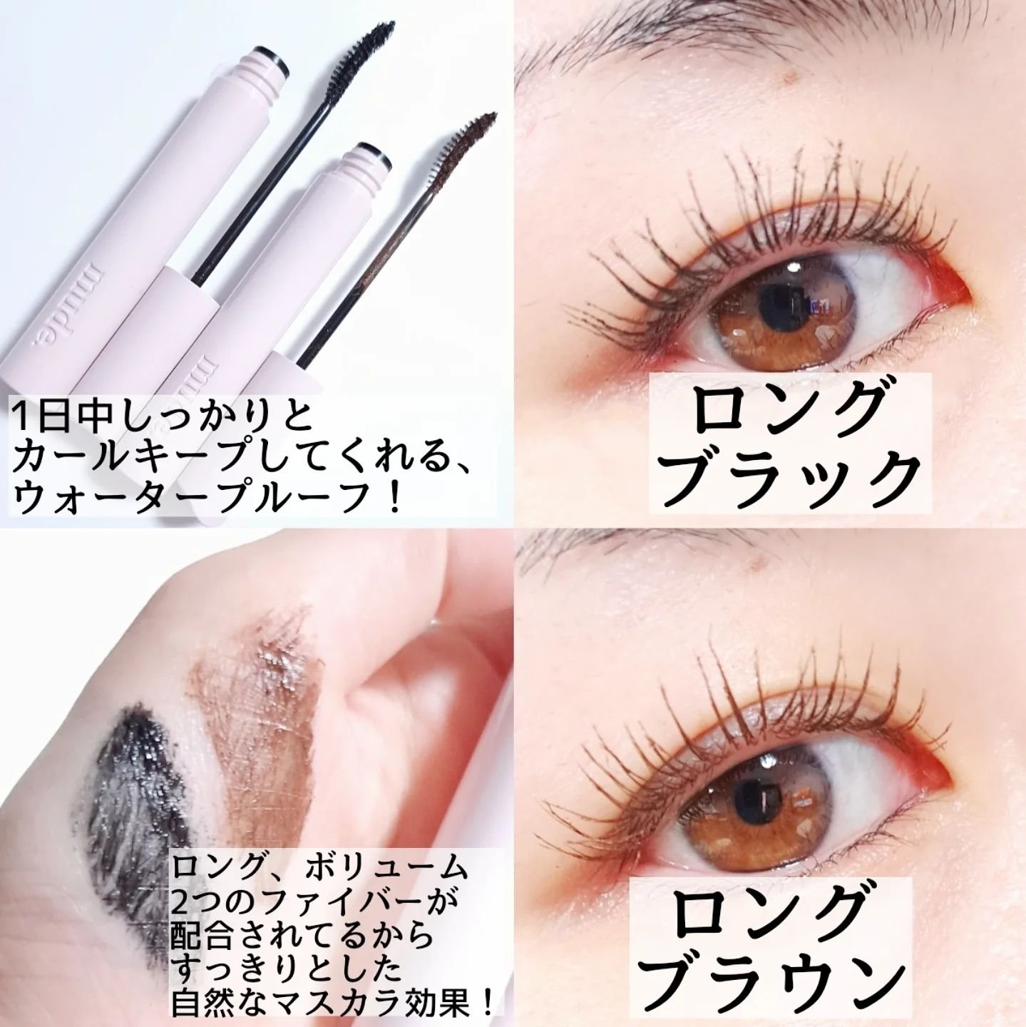 めっちゃ盛れる!!!! mude新マスカラ🤎🖤 ロングマスカラなんだけどロング、ボリューム2つのファイバーが配合されてる! 塗れば塗るほど長さが出てマツエクしたかのように盛れるんだけどケバくはない自然さがあるのも凄い👏