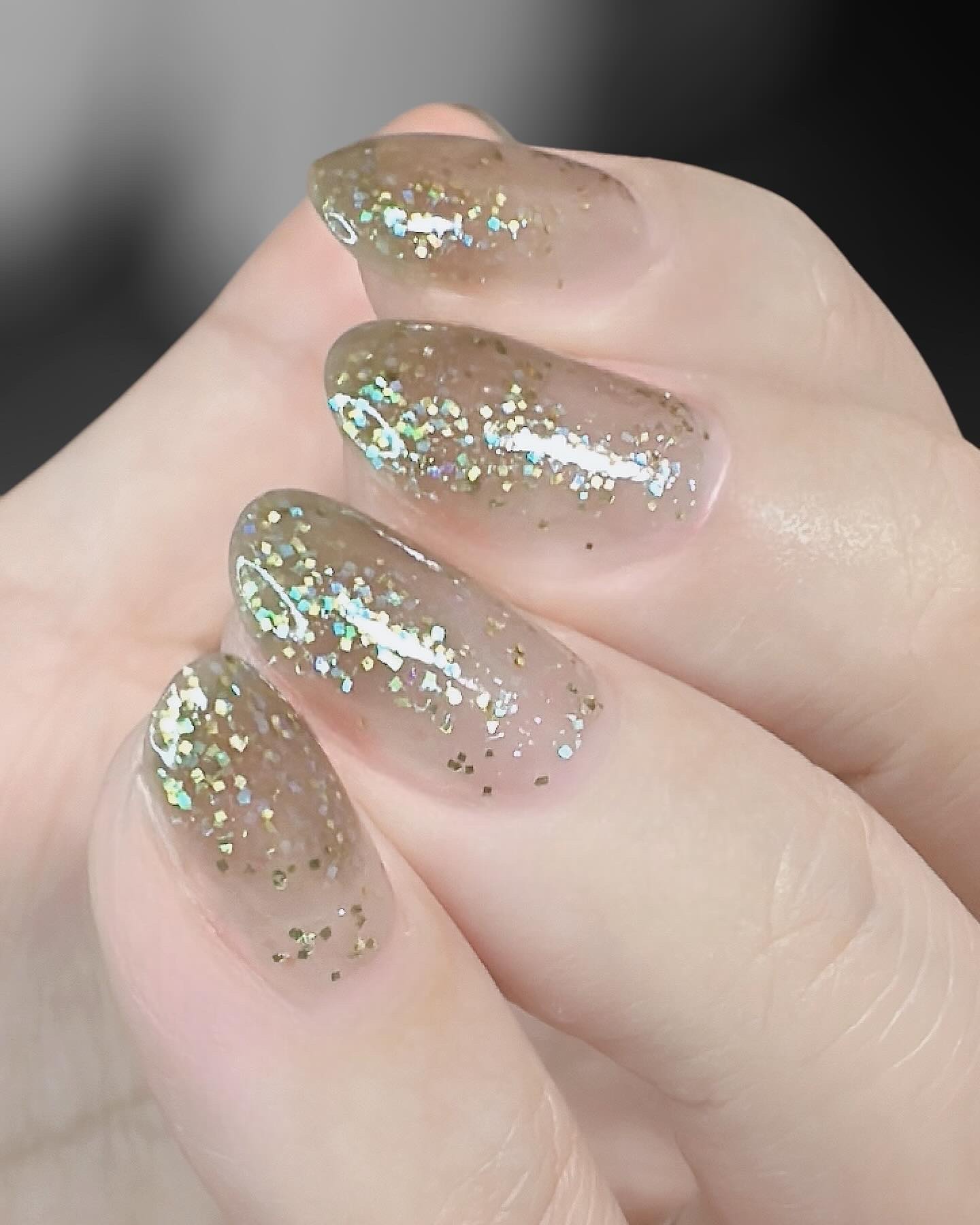 OSAJIの2024ホリデーコレクション✨️ こちらは限定ネイルのひとつになります✨️ Toushi〈透視〉は見えるはずのない景色が見えるような驚き。 透け感のあるくすんだディープグリーンに、ホログラムをぎっしりと詰め込んだカラー。 ベースもしっかり発色させたい方は3度塗りがおすすめ✨️