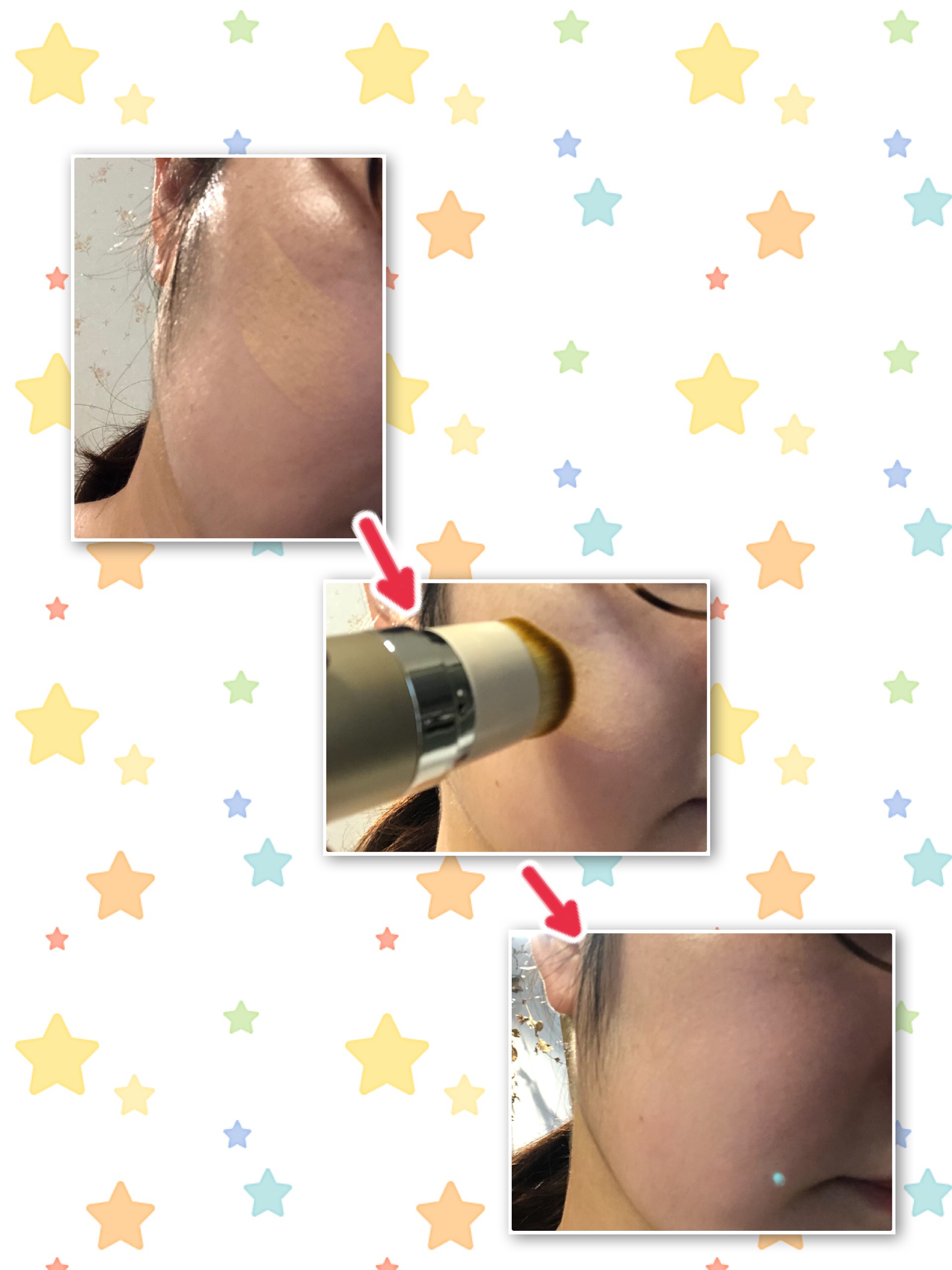 これ一本でベースメイクが完成するスティックファンデーション。ダブルエンドでファンデとブラシが一体になってるの。 ブラシは毛がびっしり!!その量なんと7万本しかもブラシの形がかわっていて、顔の骨格にあわせてカーブ型にカットされてるの。 ファンデはピタッと密着してくるし、ツヤがあるように見えるの✨保湿成分のルリジサエキスなども入っていて嬉しい♡♡♡