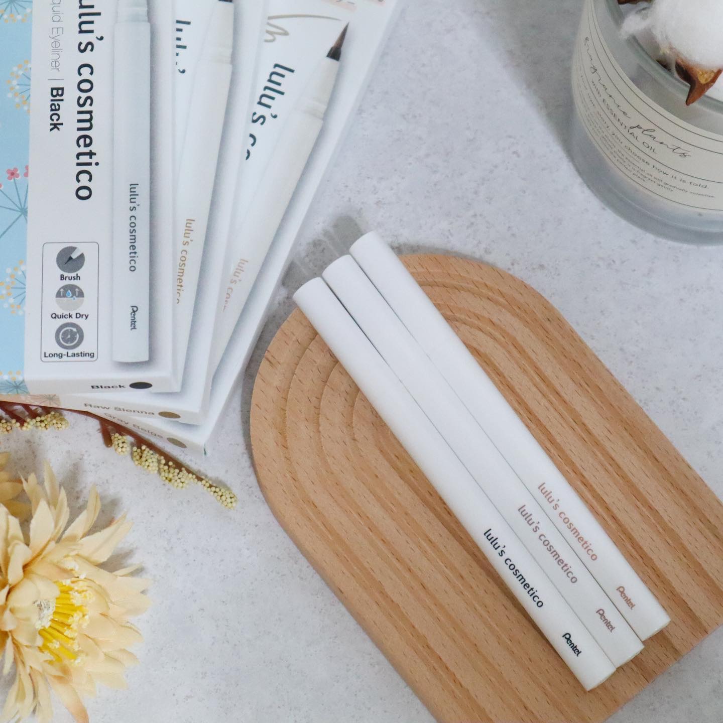 筆記具メーカーのぺんてるの化粧品ブランド「lulu’s cosmetico(ルルズコスメティコ)」 ぺんてる筆の描きやすさ!なめらか穂先のリキッドアイライナー✨ 発色もよくベーシックなカラーから抜け感カラーもあるから気分やシュチュエーションに合わせて使えて目元を鮮やかに演出してくれるよ🌿.∘