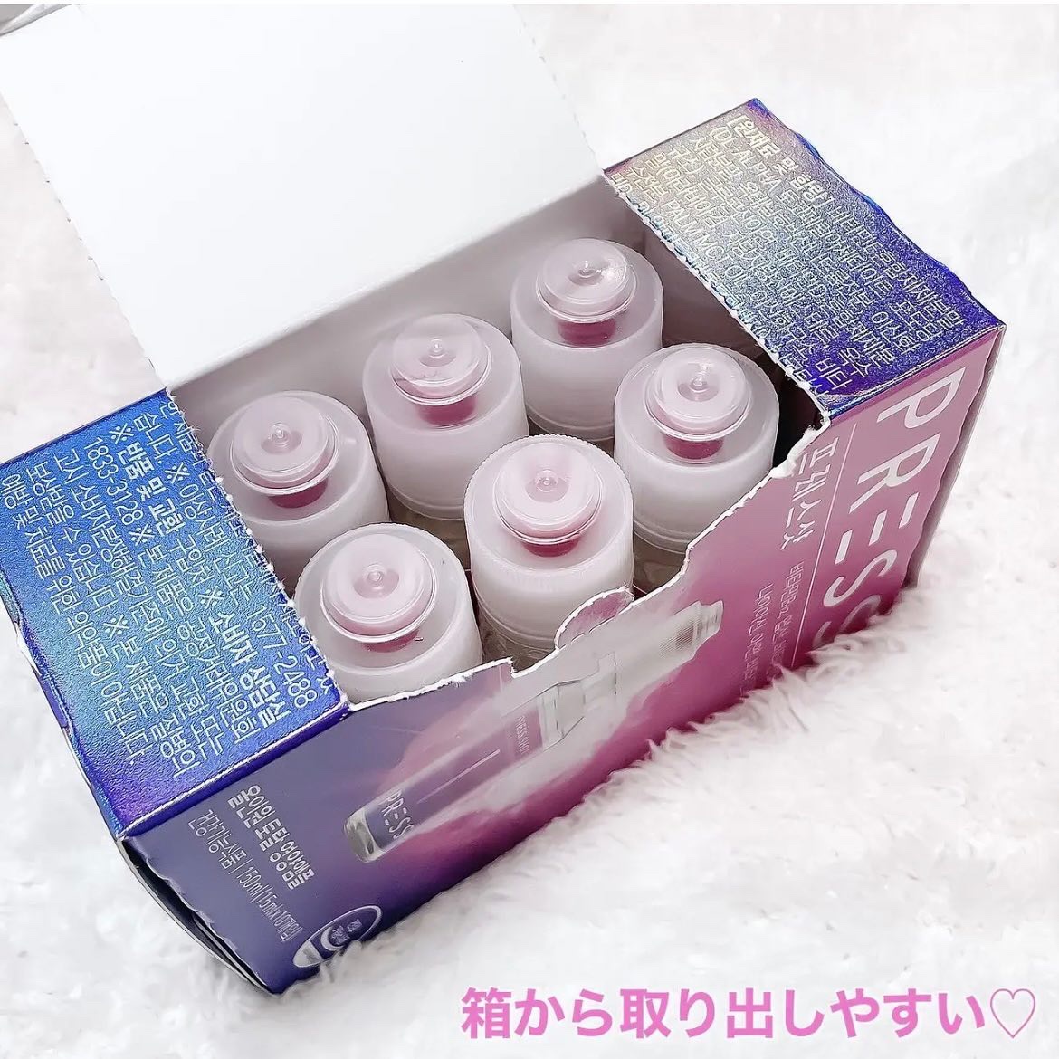 - ・PRESSしてSHAKEするだけ!魔法のようなピンクビタミンに! ・飲むインナービューティー ・飲むピンクビタミン ・粉末にはビタミン B12/D/E、葉酸、ナイアシン、亜鉛が含まれています ・吸収力を重視した液状タイプでの商品設計 ・特許取得の特殊キャップにビタミンを真空密封 ・ビタミンB群を集中配合 ・ビタミンB12は1日の基準値に対し16,667%配合 ・液体は11種類のアミノ酸で吸収しやすい設計 ・飲む瞬間にキャップを押す⇒ビタミンが液体に混ざりフレッシュなビタミンドリンクが完成! 【注意事項】 ・高カルシウム血症がある場合、または医薬品を服用されている方は専門家に相談してください。 ・体に異変を感じた場合は使用を中止し、速やかに専門家に相談してください。 ●本品は、多量摂取により疾病が治癒したり、より健康が増進するものではありません。 亜鉛の摂り過ぎは、銅の吸収を阻害するおそれがありますので、過剰摂取にならないよう注意してください。一日の摂取目安量を守ってください。乳幼児・小児は本品の摂取を避けてください。 ●本品は、特定保健用食品と異なり、消費者庁長官による個別審査を受けたものではありません。 ●食生活は、主食、主菜、副菜を基本に、食事のバランスを。 ●本品製造工場では卵、小麦、そば、落花生、えび、かに、くるみを含む製品を製造しています。 ●摂取目安量:1日当たり1本を目安にお飲みください。 ●摂取の方法:キャップを押すと粉末が落ちます。上下に振り、混ぜてからお飲みください。※粉末が固まる場合がございますが、品質には問題ありません。よく振ってからお飲みください。 2024年12月中旬より全国のウエルシア薬局とロフト※にて先行販売をいたします。 ※一部お取り扱いがない店舗がございます。