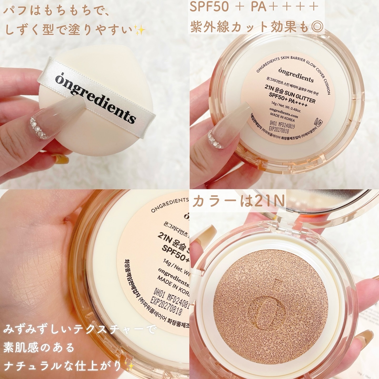 ongredientsオングリディエンツSKINBARRIERGLOWCOVERCUSHION21NSUNGLITTERSPF50+/PA++++✍️オングリディエンツ✍️オーガニックビーガンコスメで自然由来成分で様々な肌悩みにアプ...