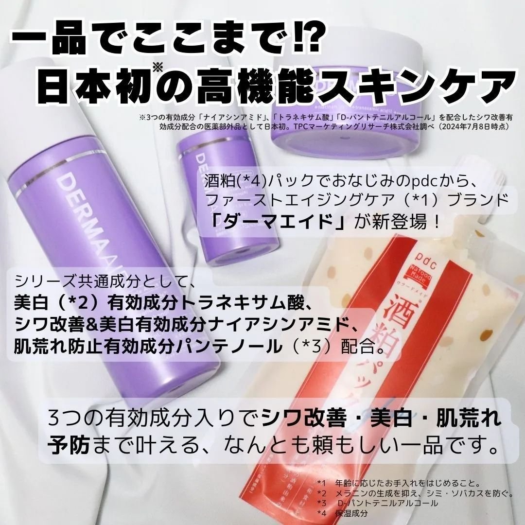 3つの有効成分が入った日本初の薬用化粧品 / バラエティショップで買える今注目の新商品!ダーマエイドトリプルアクティブシリーズ🫧 ファーストエイジングケアにピッタリ😍👏 どれも使用感はしっとりしていて乾燥肌の私でも大満足の仕上がり! 手に取りやすい価格帯でバラエティショップで買えるのも続けやすいおすすめのポイントです🙆♀️