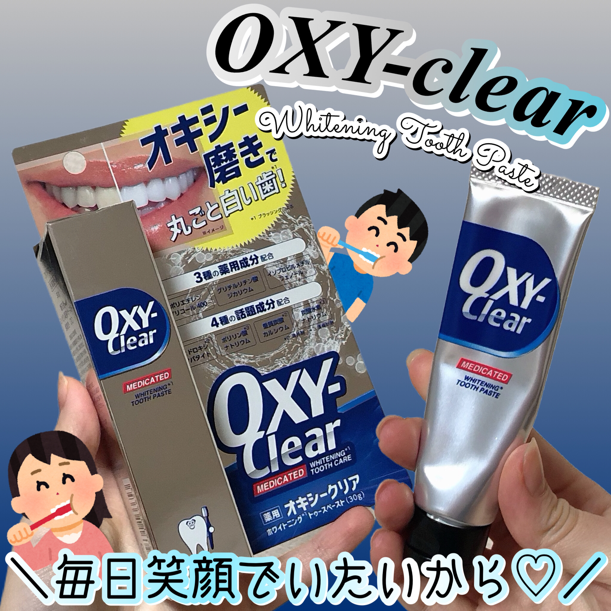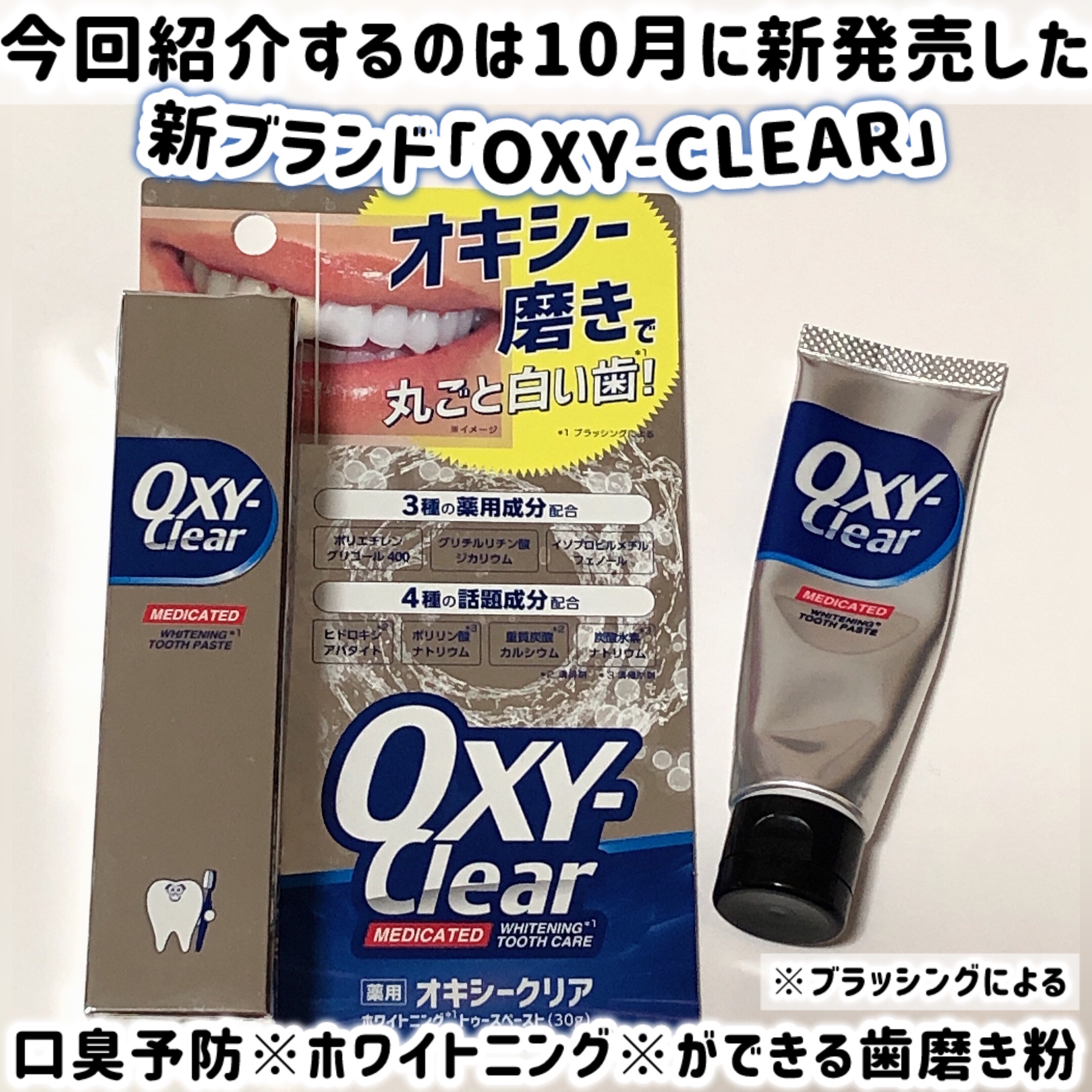 プラセス製薬の新ブランド「OXY-CLEAR」の第一弾アイテム。口臭予防とブラッシングによるホワイトニングができる歯磨き粉🦷✨ 緩めのペーストタイプで、泡立ちは少なめ。辛い歯磨き粉が苦手なのですが、こちらはパケのインパクトとはギャップのあるとってもやさしい甘めの味。 やさしい使い心地と確かな磨き心地が気に入りました☺️ 家族みんなで継続して使用してみます!