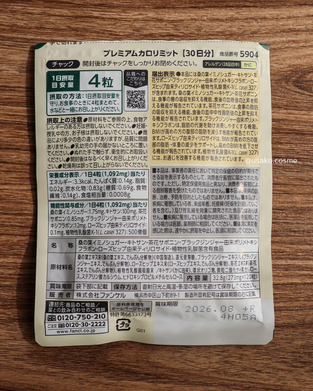 - 【機能性表示食品】 おいしく幸せに食べたい気持ちをサポートするファンケル「カロリミット」ブランドに本気で取り組みたい人に向けた“カロリミット史上最強”の製品が誕生 <お客様の「変わりたい」をサポートする製品設計> カロリミットブランドが持つ、糖と脂肪の吸収を抑える食事サポート機能はそのままに、お客様の変わりたいというニーズをサポートするために、新たに高めの BMI を低下させる機能が報告されている「ローズヒップ由来ティリロサイド」を加えました。 またお通じを改善する機能が報告されている「植物性乳酸菌 K-1(L. casei 327)」を配合。 (届出表示) 本品には桑の葉イミノシュガー・キトサン・茶花サポニン・ブラックジンジャー由来ポリメトキシフラボン・ローズヒップ由来ティリロサイド・植物性乳酸菌K-1(L. casei 327)が含まれます。 桑の葉イミノシュガー・キトサン・茶花サポニンは、食事の糖の吸収を抑える機能、食後の血糖値の上昇を抑える機能が報告されています。茶花サポニンは、食事の脂肪の吸収を抑える機能、食後の血中中性脂肪値の上昇を抑える機能が報告されています。ブラックジンジャー由来ポリメトキシフラボンは、脂肪の代謝を助け消費しやすくする機能、BMIが高めの方の腹部の脂肪を減らす機能が報告されています。ローズヒップ由来ティリロサイドは、BMIが高めの方の腹部の脂肪・体重の減少をサポートし、高めのBMIを低下させる機能が報告されています。 植物性乳酸菌 K-1(L. casei 327)には、お通じを改善する機能が報告されています。 <継続しやすい製剤設計> 当社独自の製剤技術により、目安量の 1 日 4 粒を実現し、お客様に継続して摂取いただけるよう工夫しました。 併せて剤形のコーティング技術により、配合成分が持つ独特の臭いなどを抑え、食事の邪魔をしない設計にこだわりました。 <親しみやすさと高品質な印象を両立したパッケージデザイン> 製品特長が分かりやすく、選びやすいことに加え、カロリミットブランドが持つ明るく親しみやすい印象と上品な金色による高級・高品質な印象の両立にこだわりました。 【アレルゲン(28品目中)】 かに 【ご注意】 ※妊娠・授乳中の方、未成年の方はお召し上がりにならないでください。 ※本品は、特定保健用食品と異なり、消費者庁長官による個別審査を受けたものではありません。 ※疾病の診断、治療、予防を目的としたものではありません。 ※食生活は、主食、主菜、副菜を基本に、食事のバランスを。 9月下旬から順次、一部コンビニエンスストアやドラッグストア、EC モールで先行発売を予定しています。