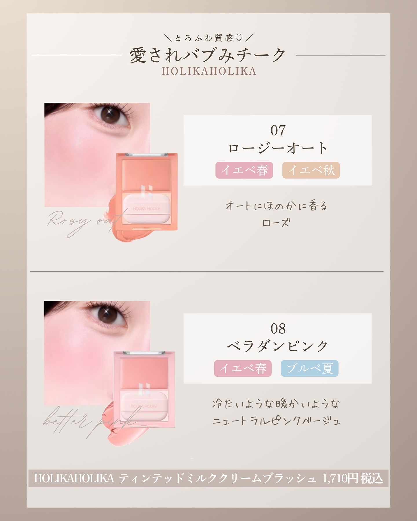 HOLIKA HOLIKA ティンテッドミルククリームブラッシュ | 1,650円 |