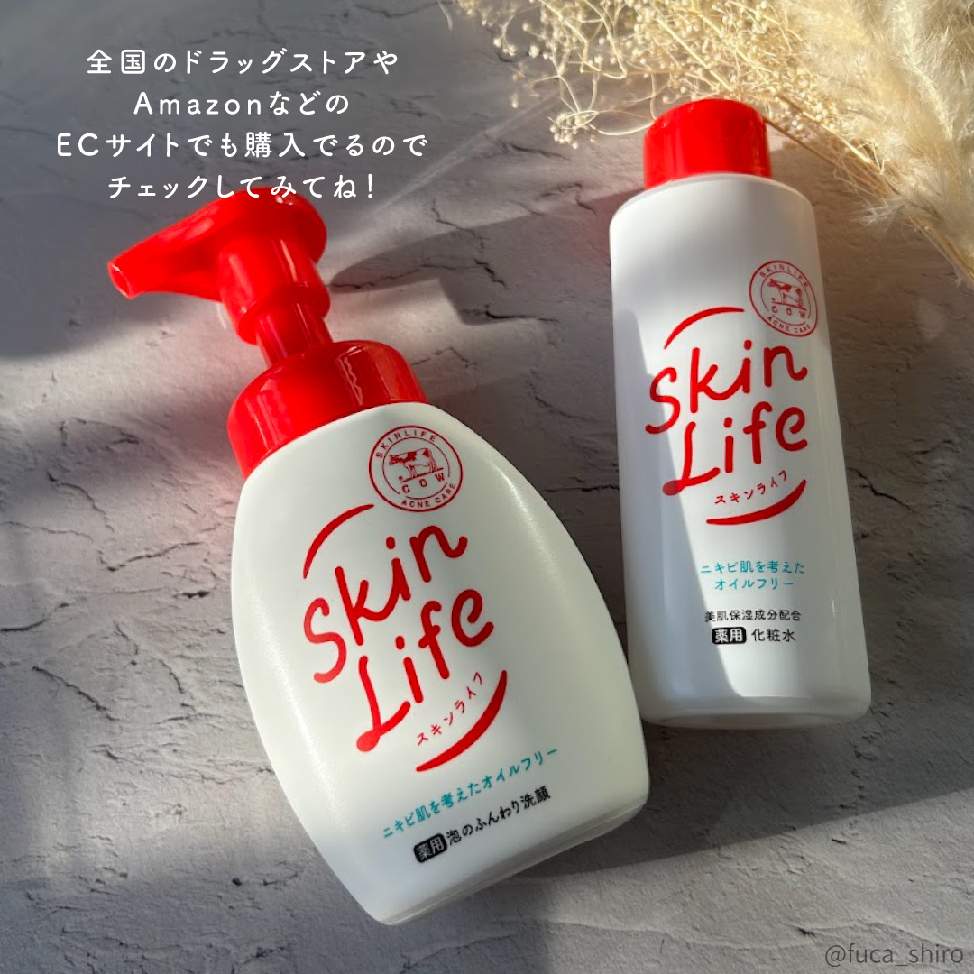 無香料でオイルフリー、ニキビ肌を考えた処方 CICA(ツボクサエキス)・ビタミンC誘導体・ヒアルロン酸配合で、ニキビケアしながら美肌ケアもできちゃう! ふわふわモチモチ泡の洗顔料は「グリセリンフリー」アイテムとしてSNSで話題! 医薬部外品のスキンライフシリーズは、全国のドラッグストアやAmazonなどのECサイトでも購入可能!