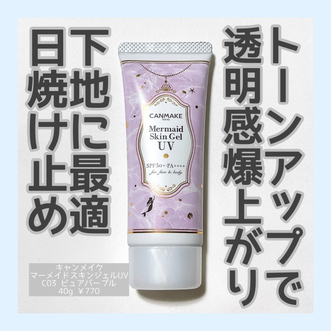 キャンメイクマーメイドスキンジェルUVC03ピュアパープル#提供日焼け止め・化粧下地メイク下地・からだ用としても化粧水感覚で最強UV記載あり気になってる方はチェックしてみてください#キャンメイク#マーメイドスキンジェルUV#キャンメイク日焼け...