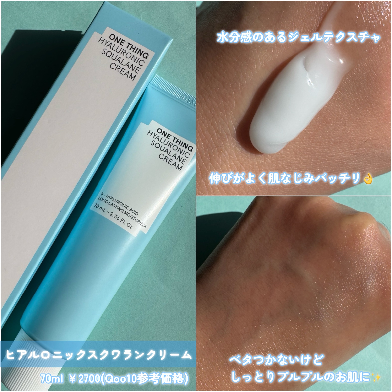 角質層までしっかり水分を届ける →8種類ヒアルロン酸 ヒアルロン酸ウォーターベースの水分層とスクワランオイルの保湿層が合わさったセラム💙 潤いたっぷりのジェルクリーム🩵こってり系じゃないのでベタベタせず朝晩使えそう✨